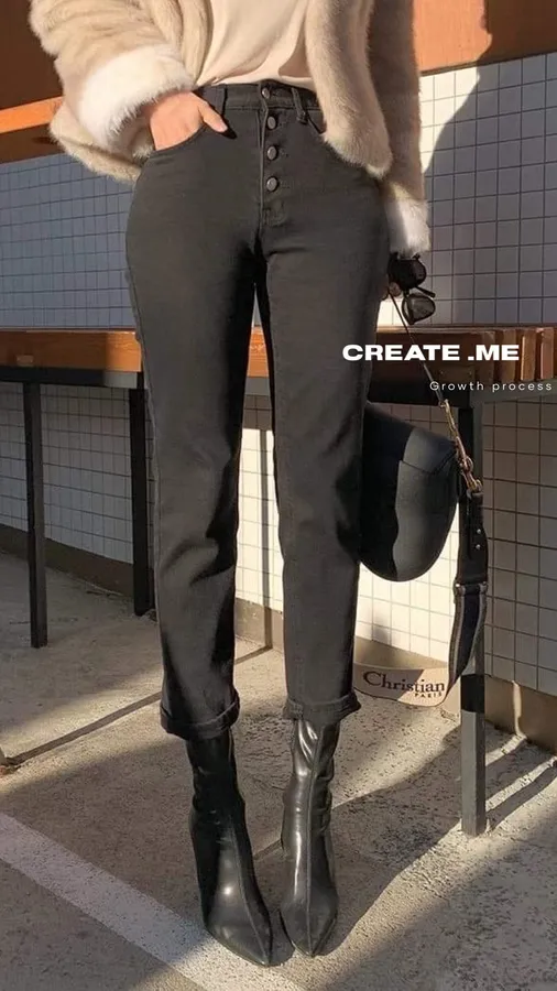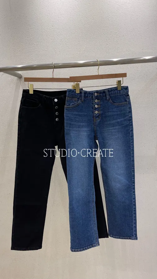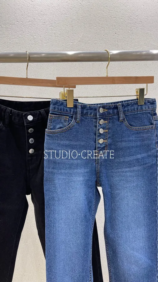 #S018 簡單時髦的排扣小直筒牛仔褲