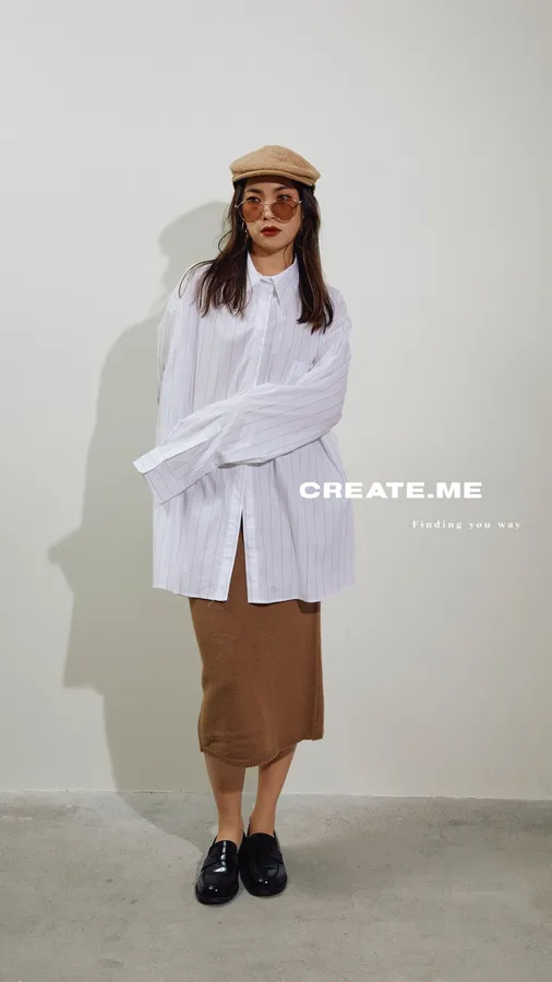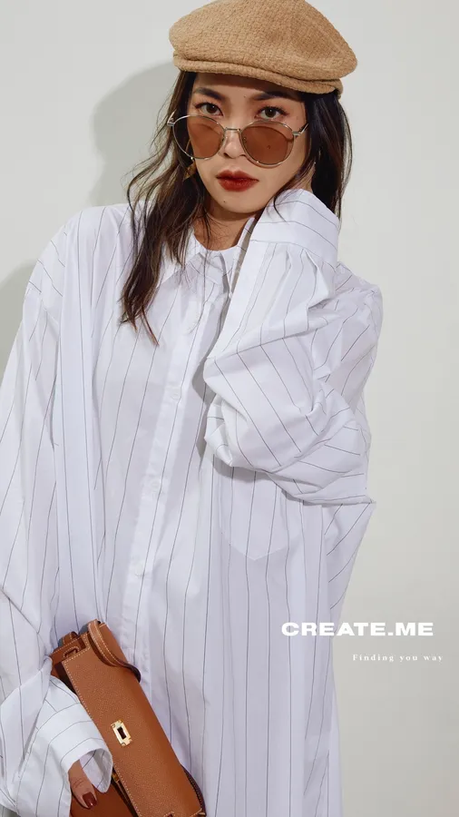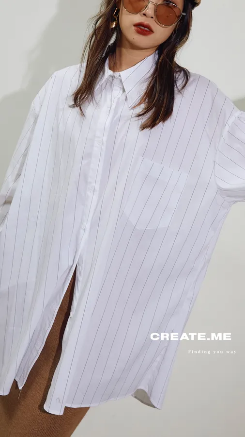 #J055 oversize條紋襯衫~可當ops
