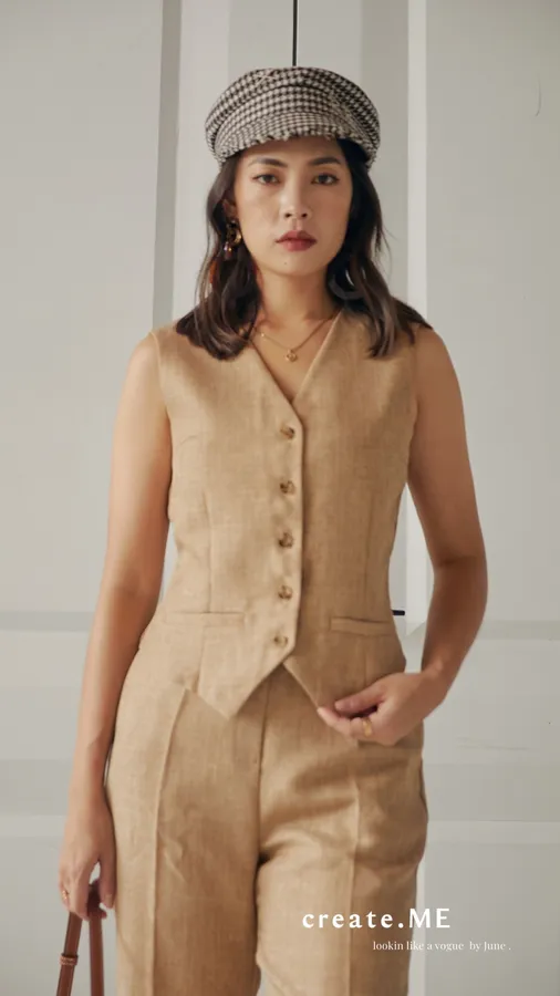 Q023 俐落高質感挺料棉麻套裝 ~ king , gemma 清單 (褲子下單處)