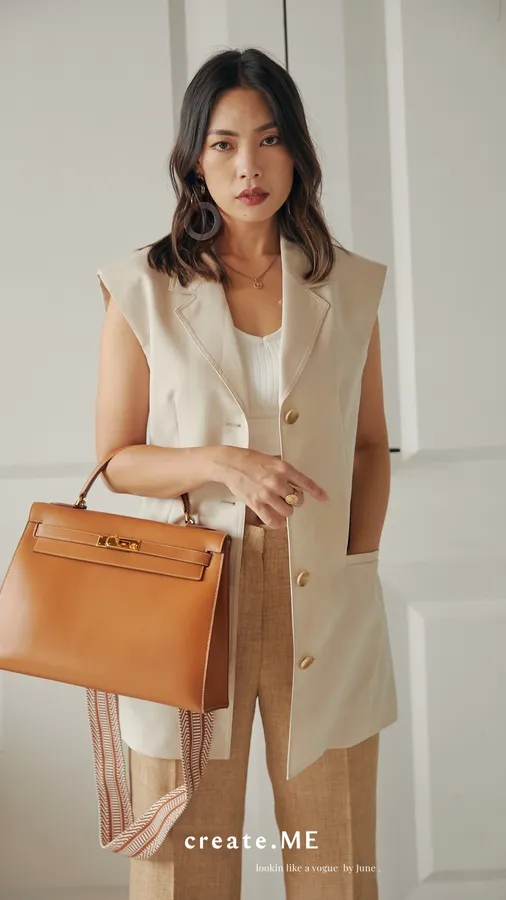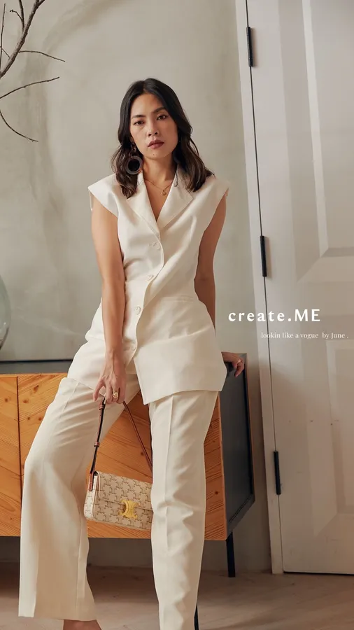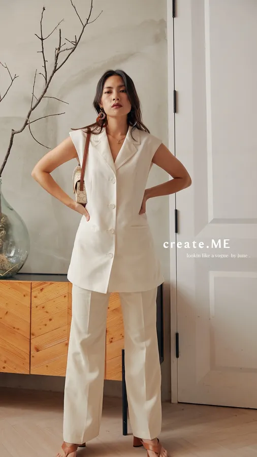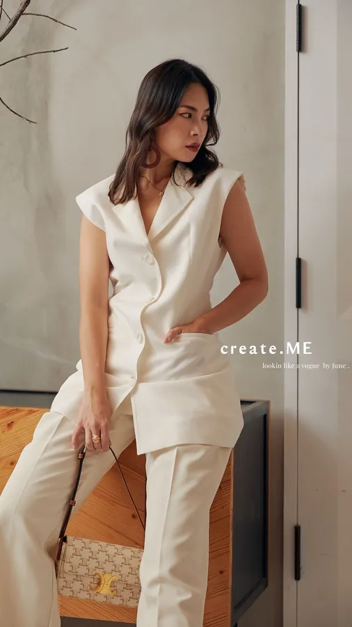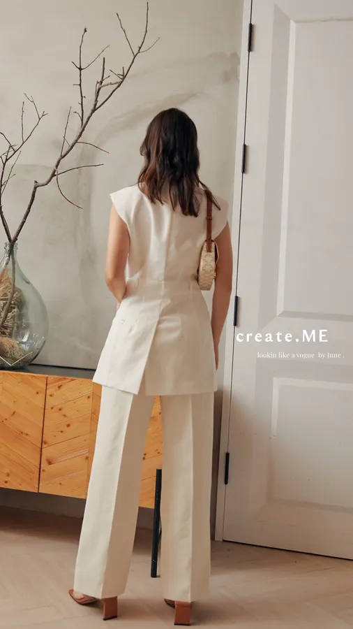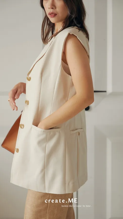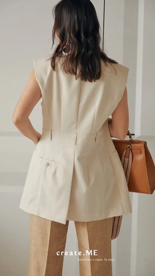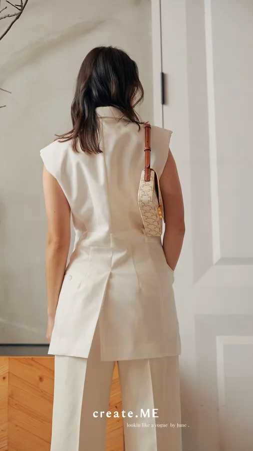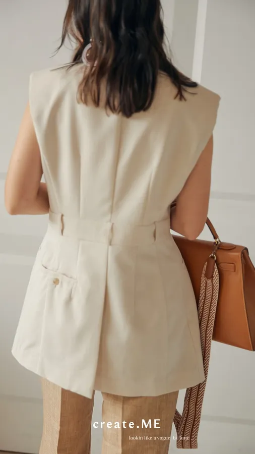 #Q038 後設計不對稱挺料麻西裝背心 ❤️