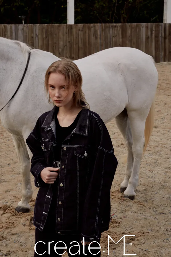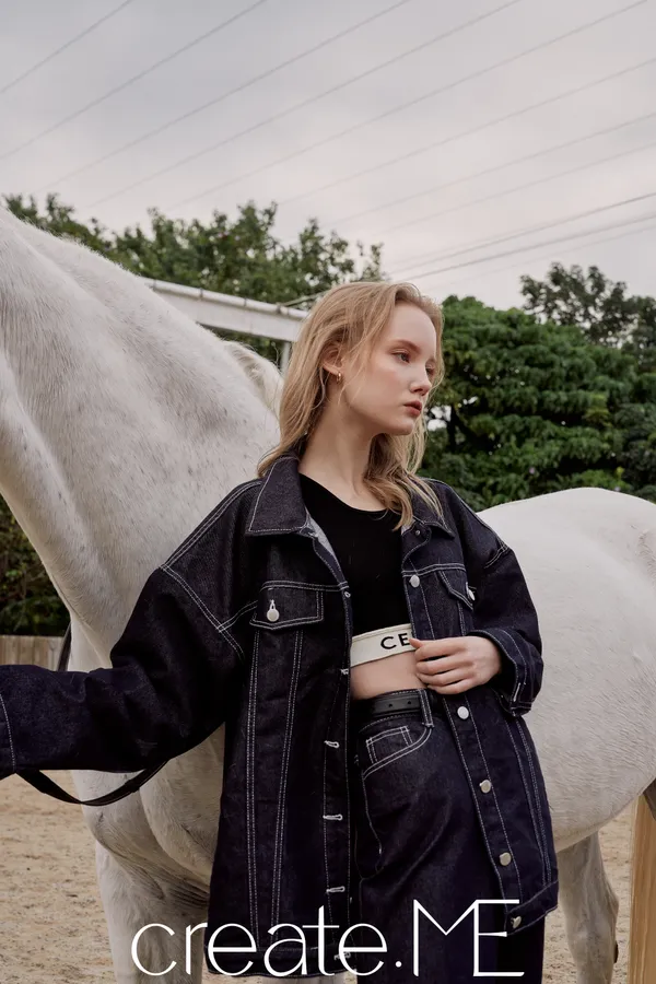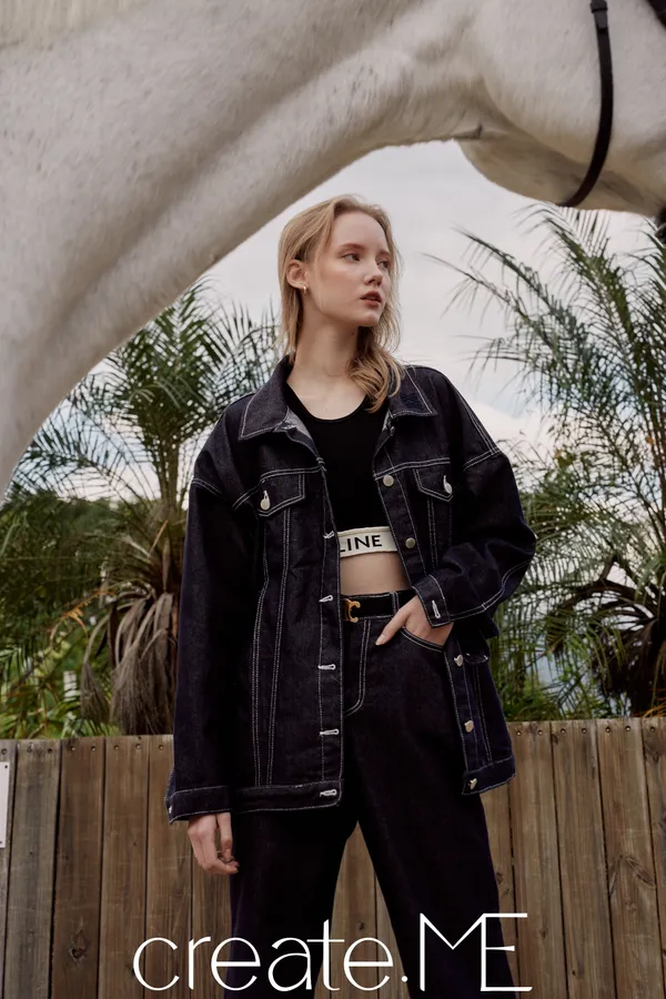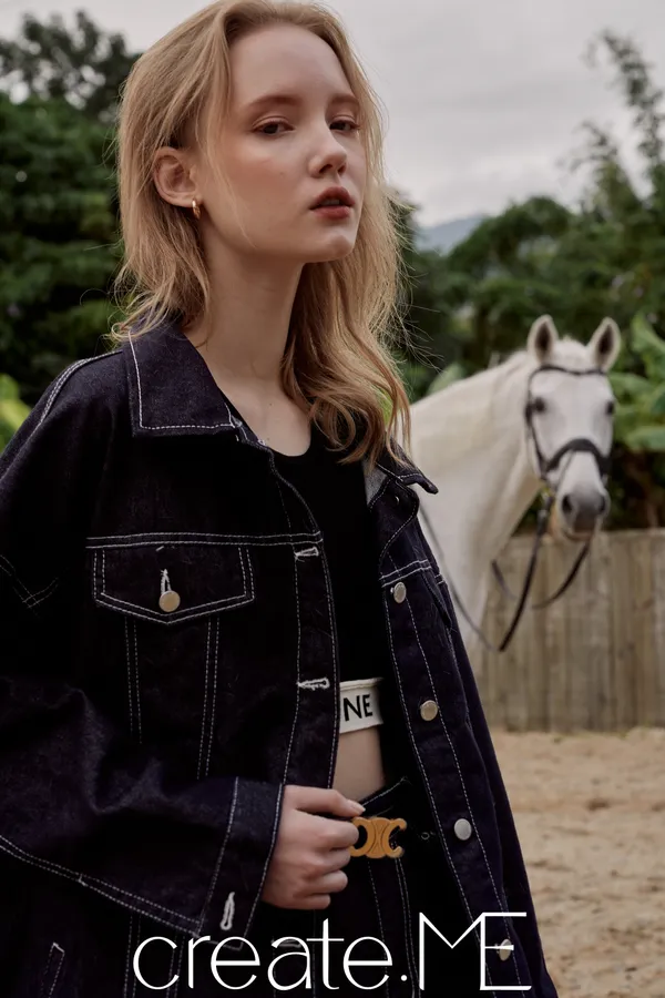 #de04 品牌必收皮標牛仔套裝 『外套 』
