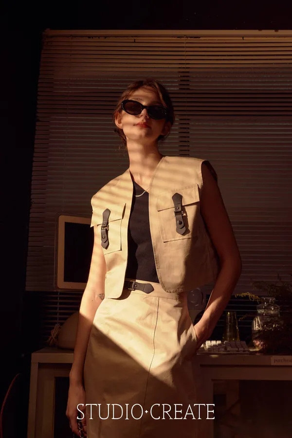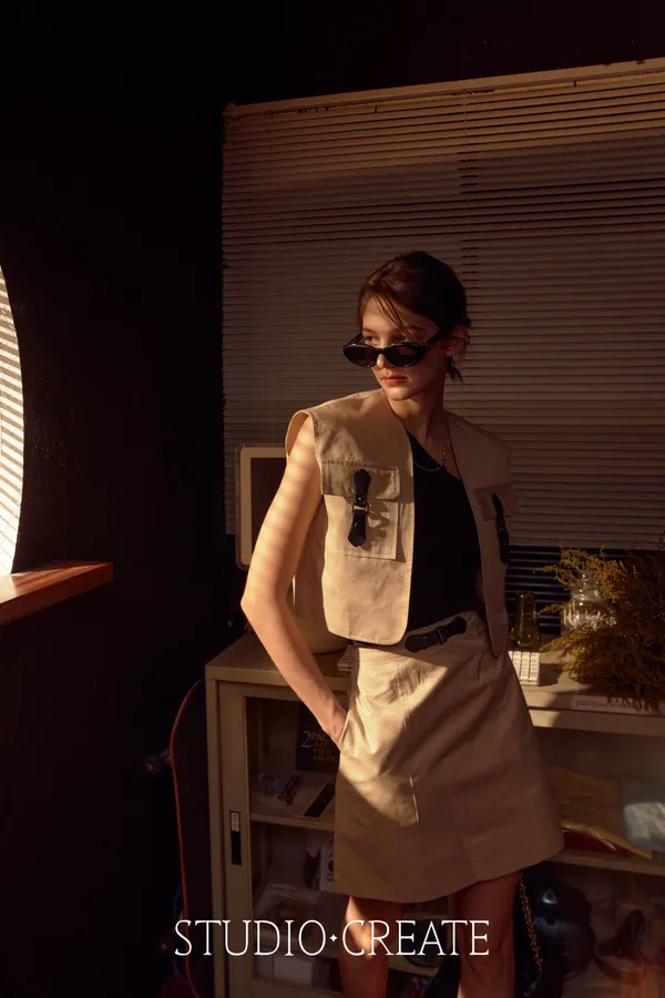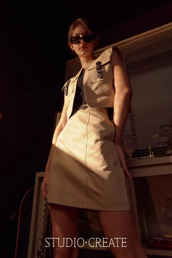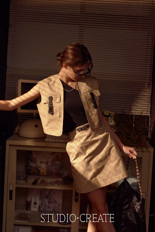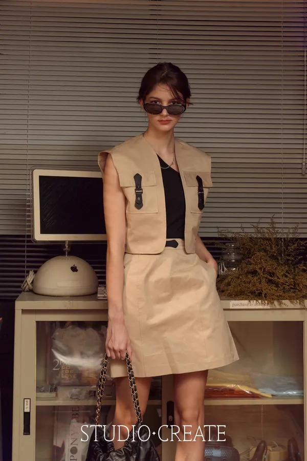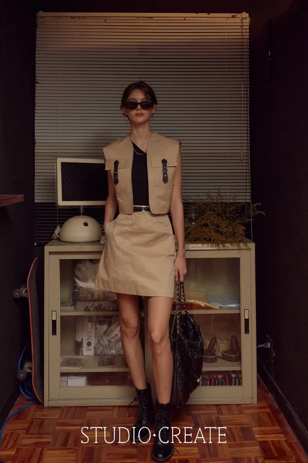 #22_de67 最帥的那套皮環cargo 風衣材質套裝~❤️ [裙子下單處 ]