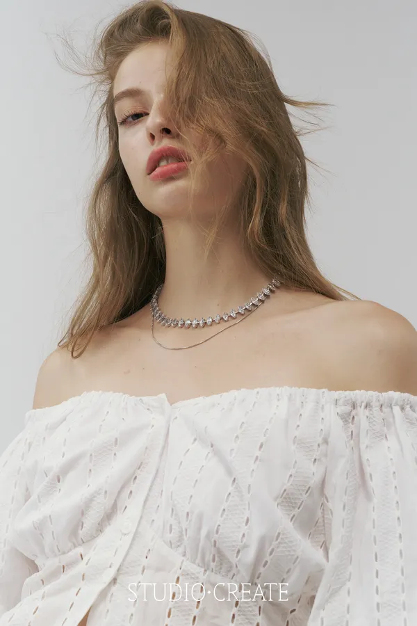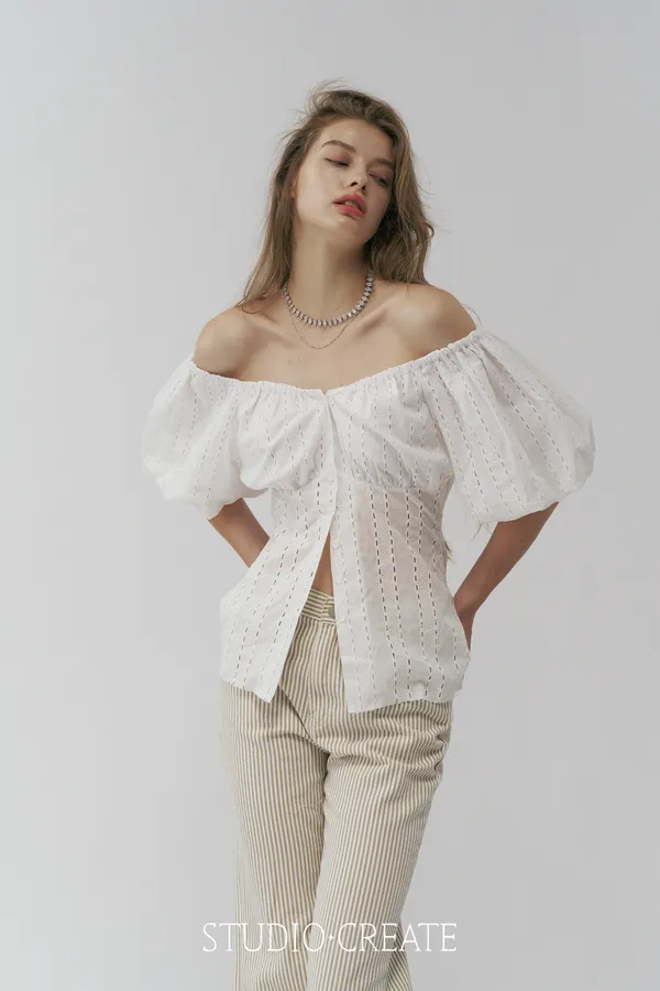 GR22 [ 獨家自訂款 ] 前開扣布蕾絲可拉一字領的仙女上衣~~❤️
