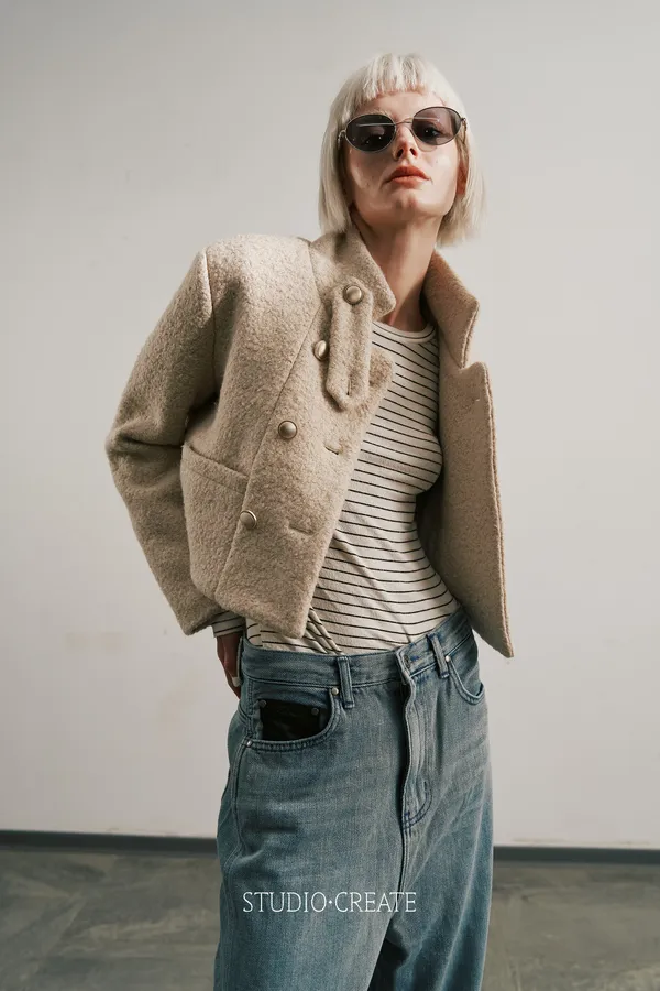 It30 [預購] 韓國面料短版雙排扣高級感滿滿羊毛外套~~❤️ 超可愛
