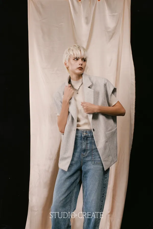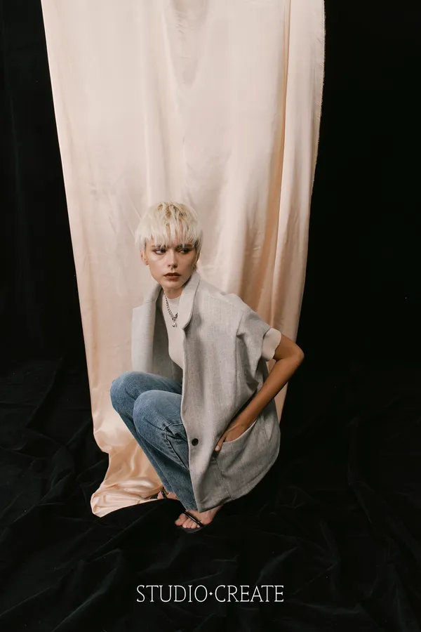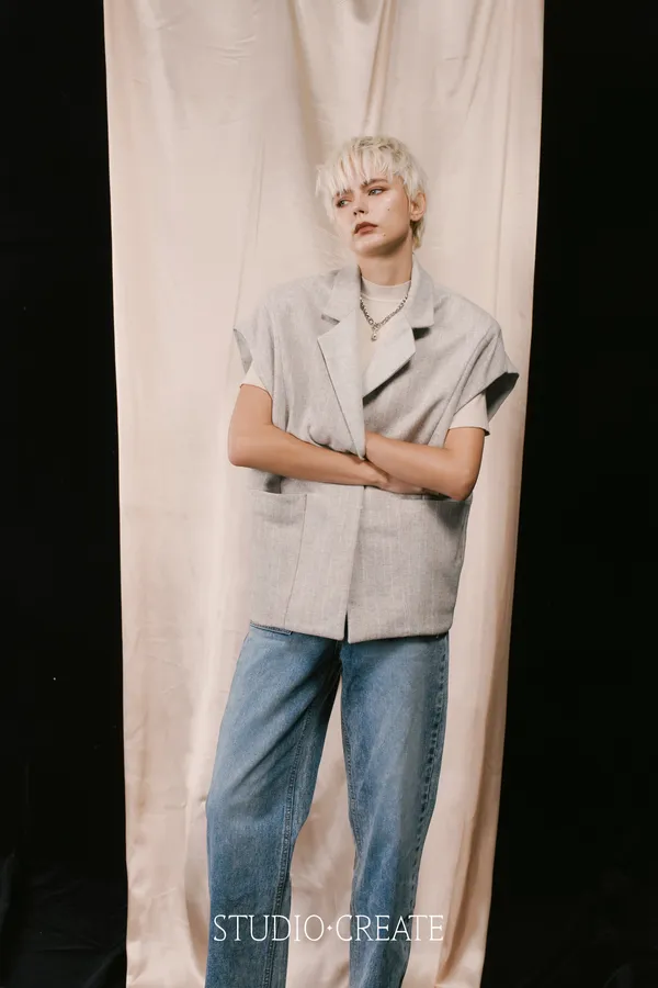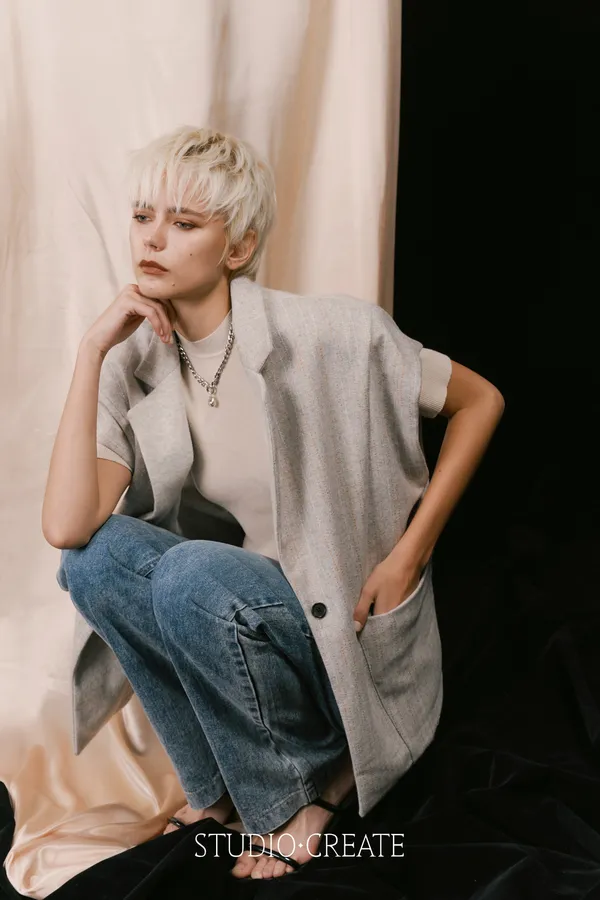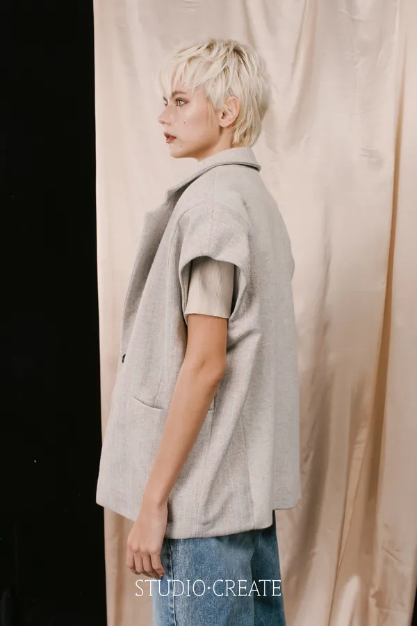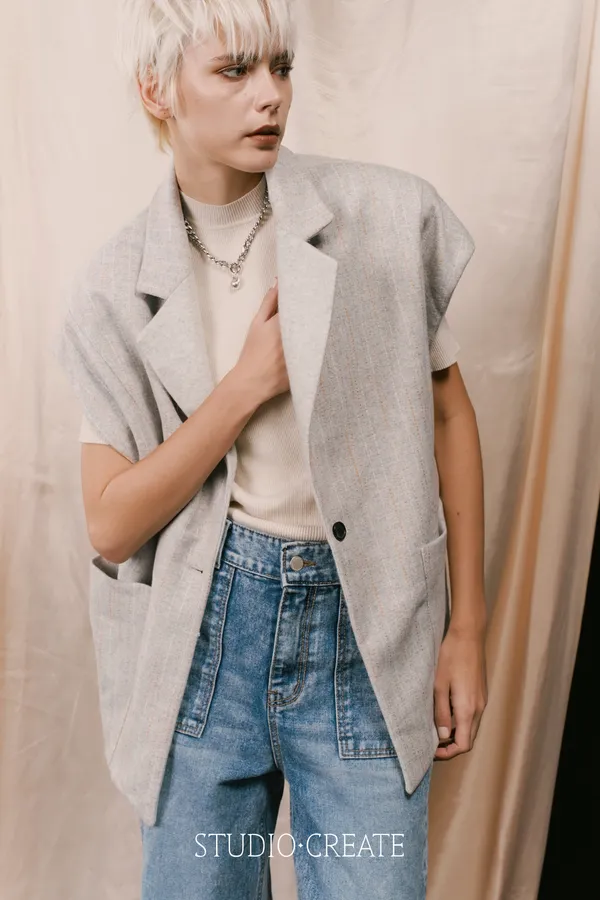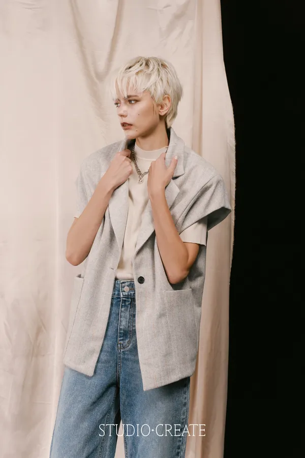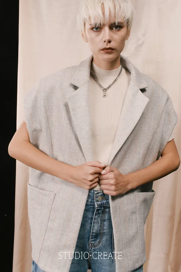LV11 特殊線條羊毛拼接素面時髦背心~~~❤️