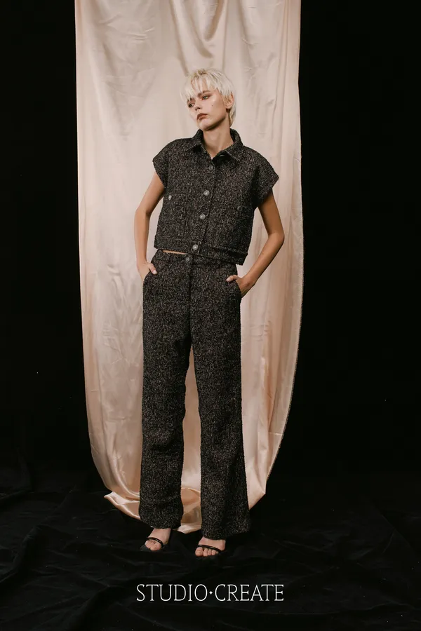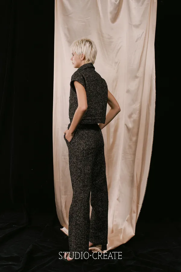 LV18 方塊格紋黑粉桃紅色系時髦套裝~~背心+長褲~~❤️