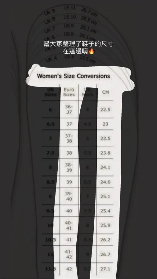 建議不要用其他鞋子來看尺寸