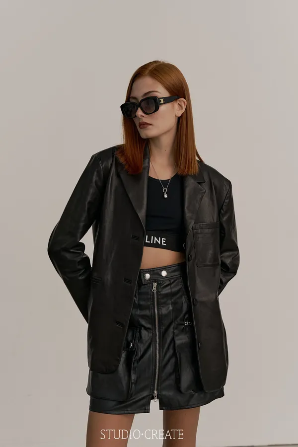 SH03 今年必收上下拉鍊左右不對稱皮革褲裙 ~~必收❤️