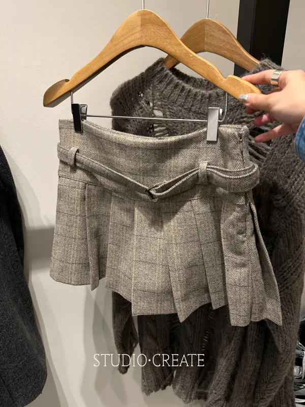 V010 很少喜歡這樣的寬百摺洋毛線條褲裙~~顏色超可愛~~❤️
