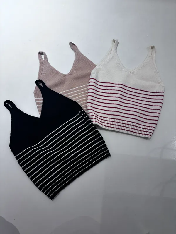 V035 [自訂款 ] 本月連線必收毛料條文細肩帶上衣~~❤️