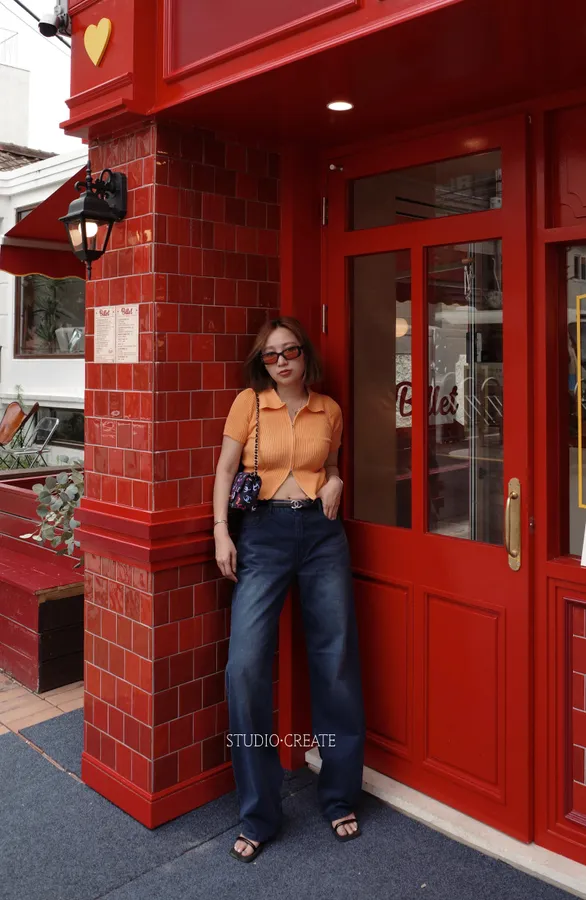 直播搭配橘色的t超好看~~日牌到底~