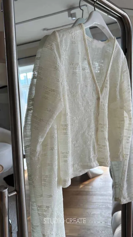 C012 [斷貨獨賣] 好喜歡這種有點花紋布料的透膚小罩衫上衣~~❤️