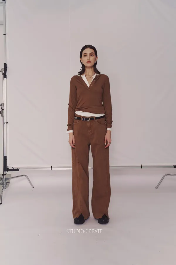 CD01 秋冬就是要這樣時髦咖咖的褲子不嫌多~~~❤️ 褲腳開衩很顯腿長