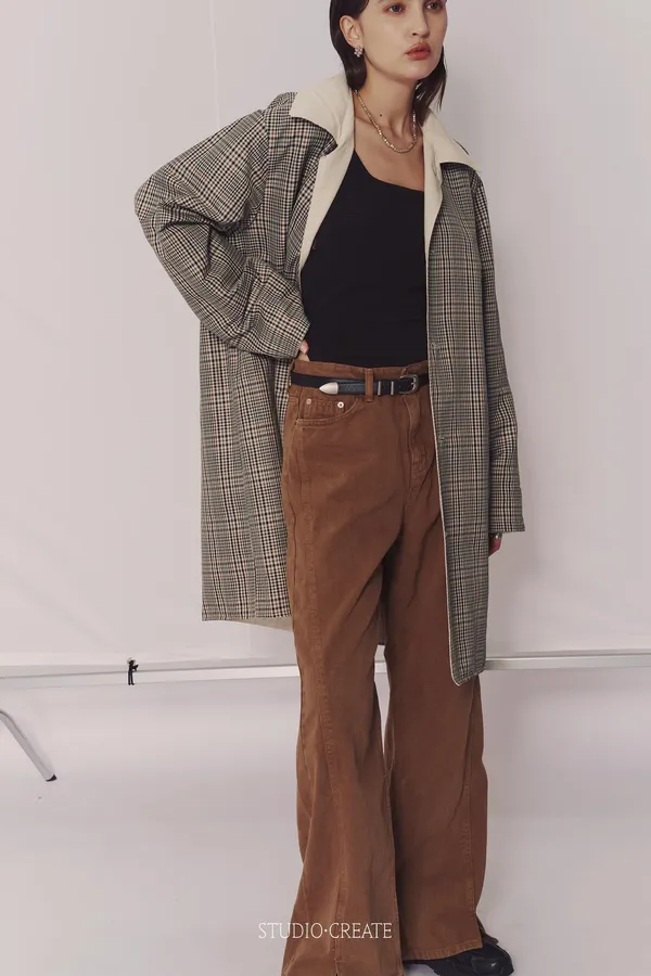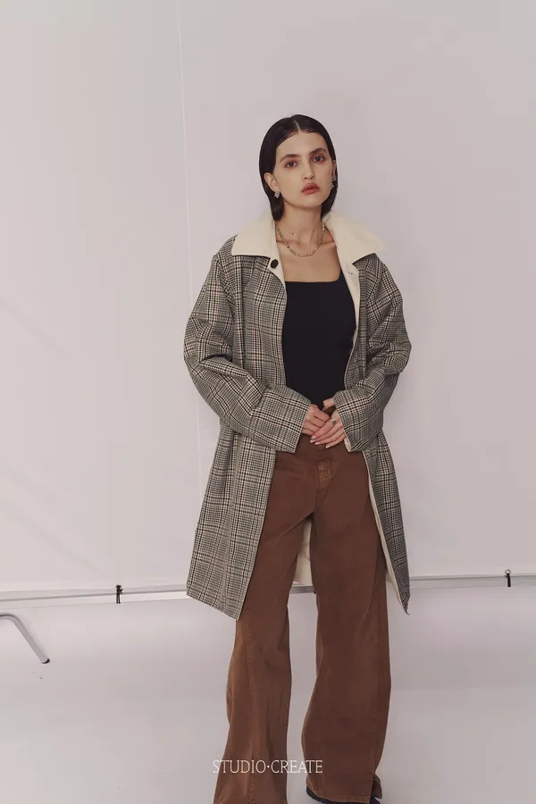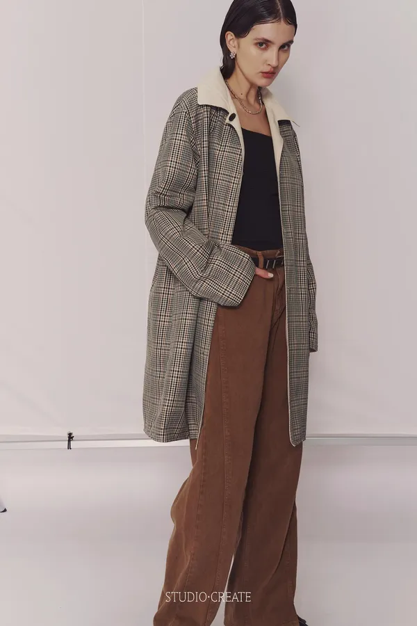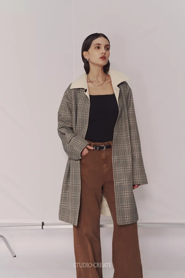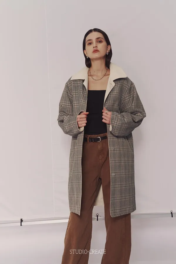 CD19 超級時髦中長版雙面穿風衣~~格紋+米白色 ❤️
