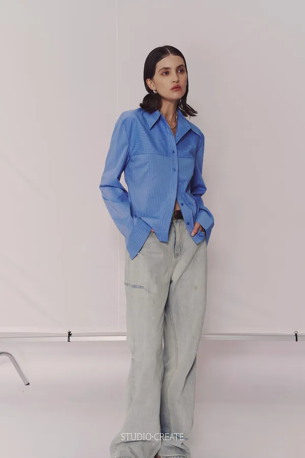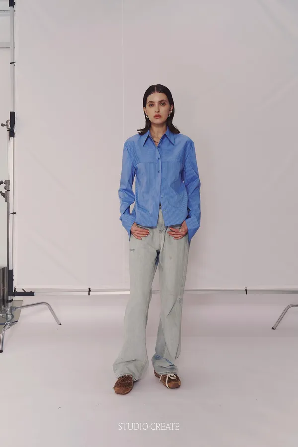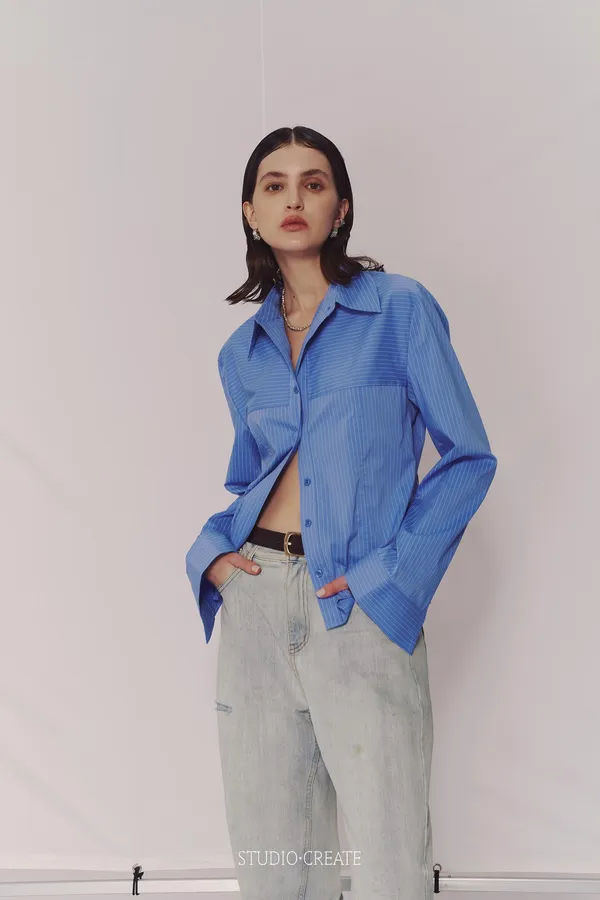 CD20 設計師店家高單線條 縱向橫向不對稱設計質感襯衫~~喜歡高單必收~❤️
