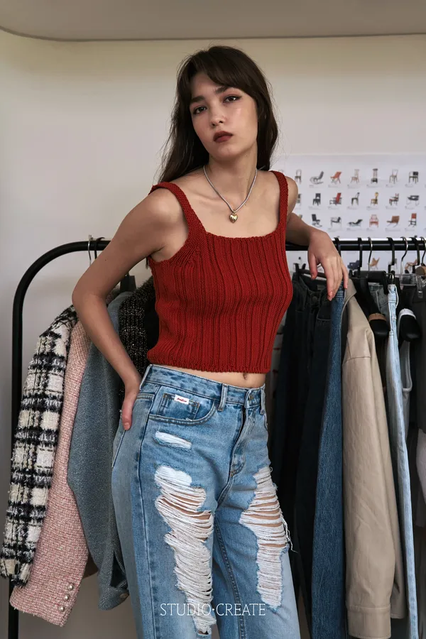 Hk05 夏天第一發自訂針織上衣~~做了很可愛的紅色~~❤️ 夏天必收
