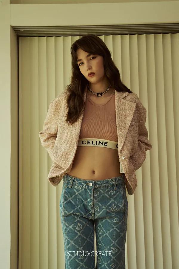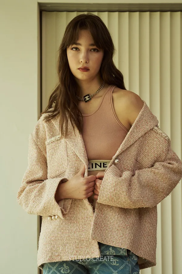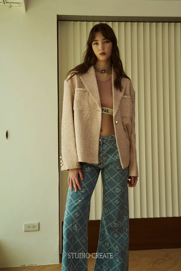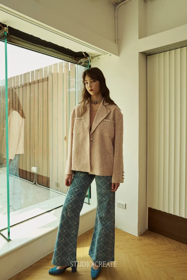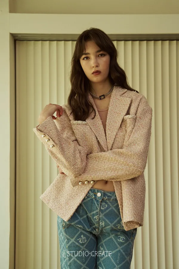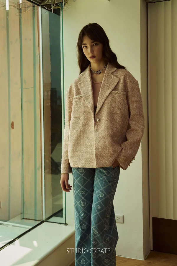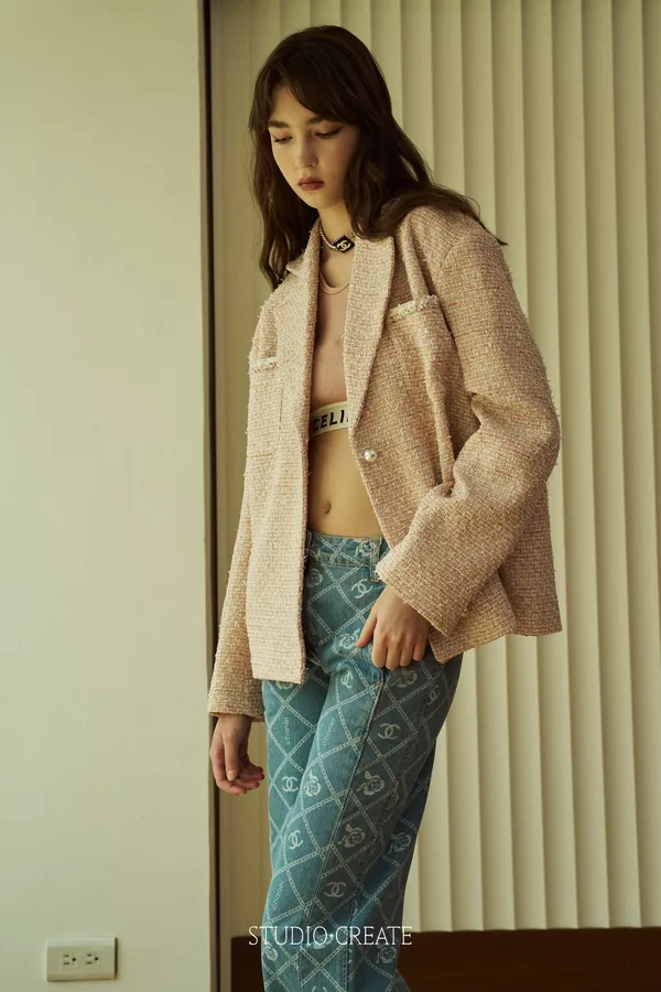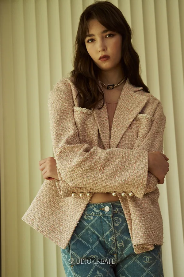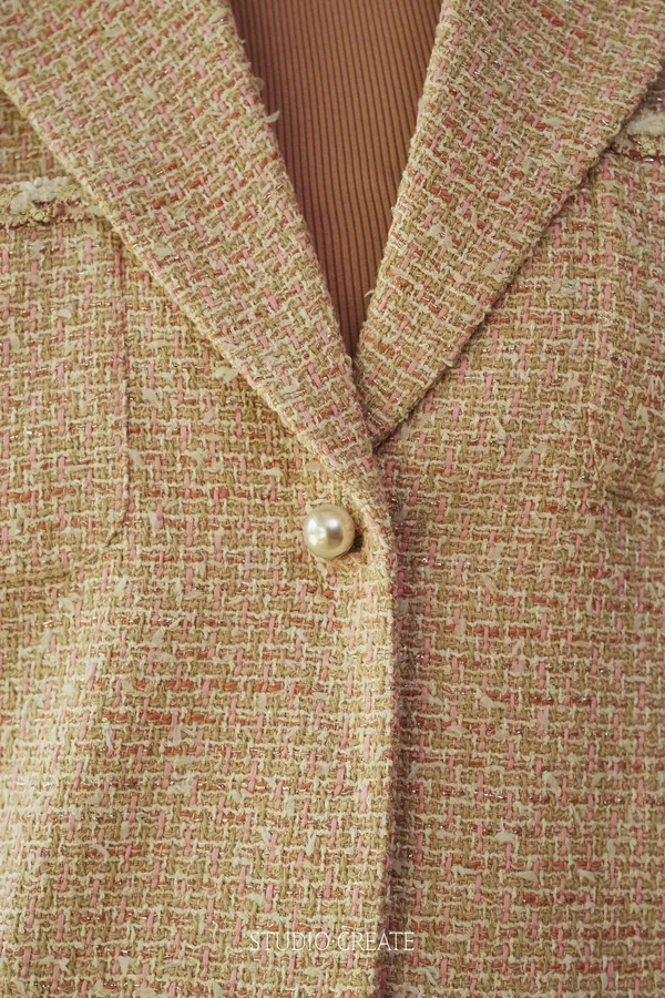 Hk14 [品牌線限量布料系列 ] 香奈兒女士必須要有的大顆珍珠 oversized粉色西外~~❤️ 真的超美~