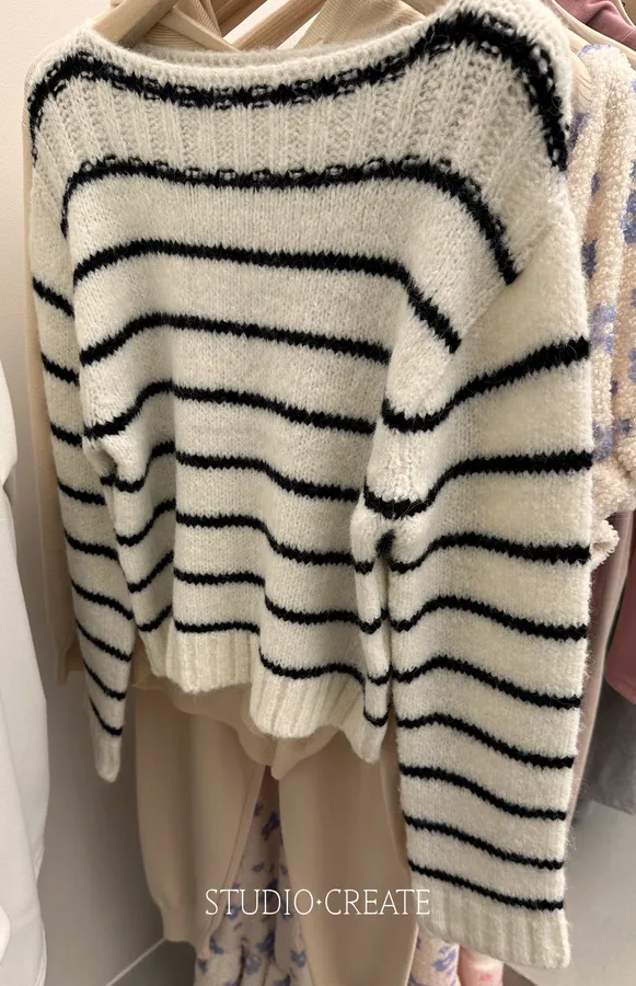 J010 [ 特價售完不追加 ] 船型領條紋毛衣~~高單特價要搶~~❤️原價3280