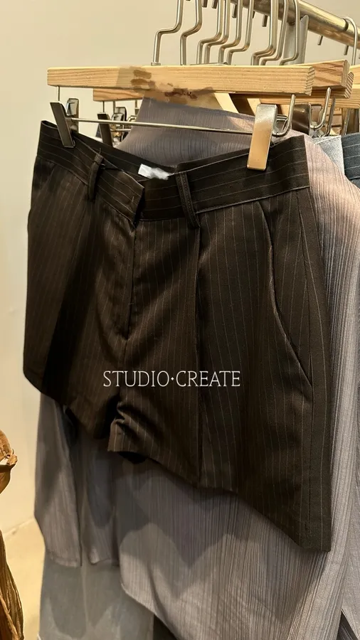 J018 必收深咖色有夠有質感線條不皺布料西裝短褲~~~❤️