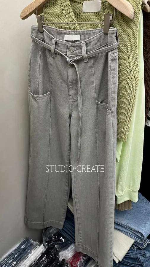 JK31 [尺寸加開] 淺灰色水洗特殊設計中直筒牛仔褲~~❤️