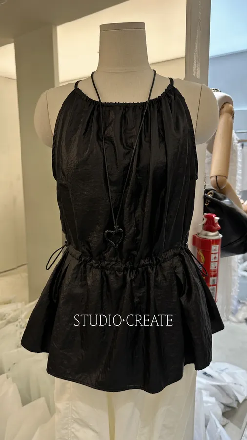 P005 超特別材質有黑石style的繞脖收腰綁帶上衣~~❤️ 我要入黑色