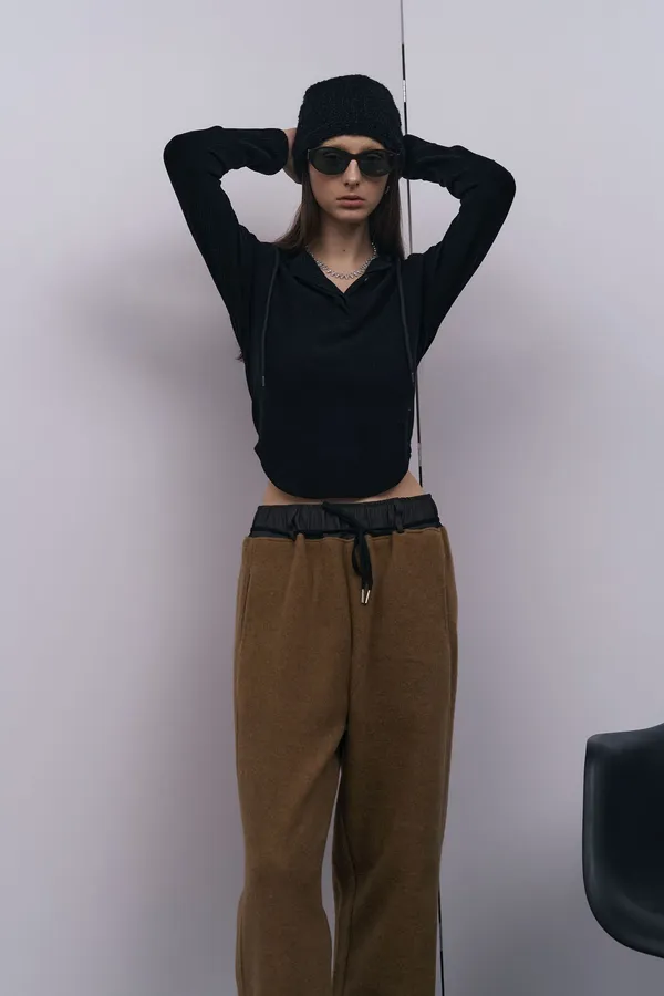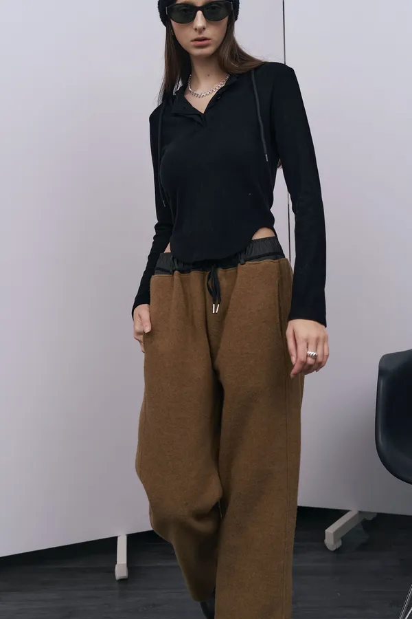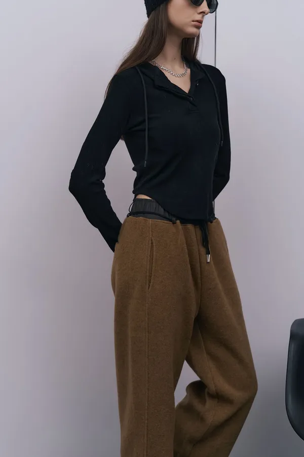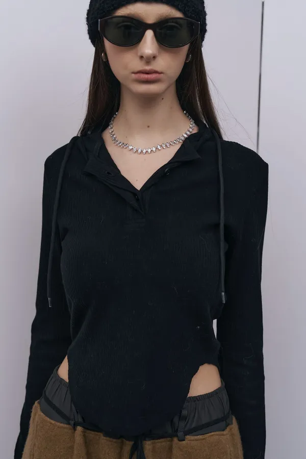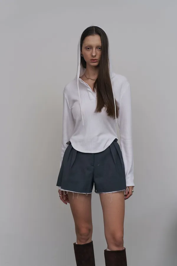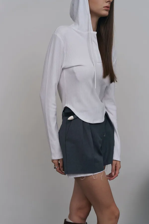 Paris02 下擺U領弧度 抽繩連帽打底衣~~真的也是超級可愛~~❤️心外套套裝