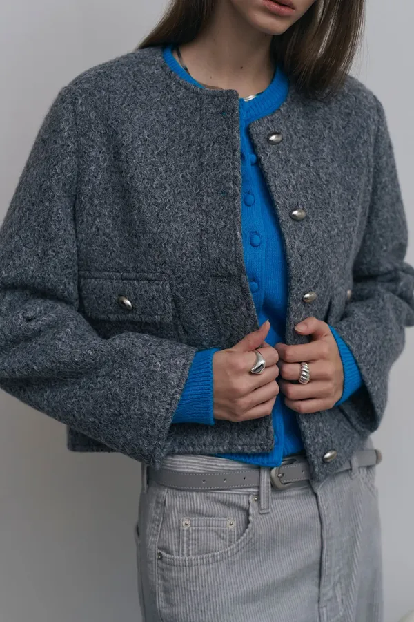 Paris12 兩色我選不出來的時髦顏色扣子同布料開襟外 ~~藍跟綠都好好看~~~❤️