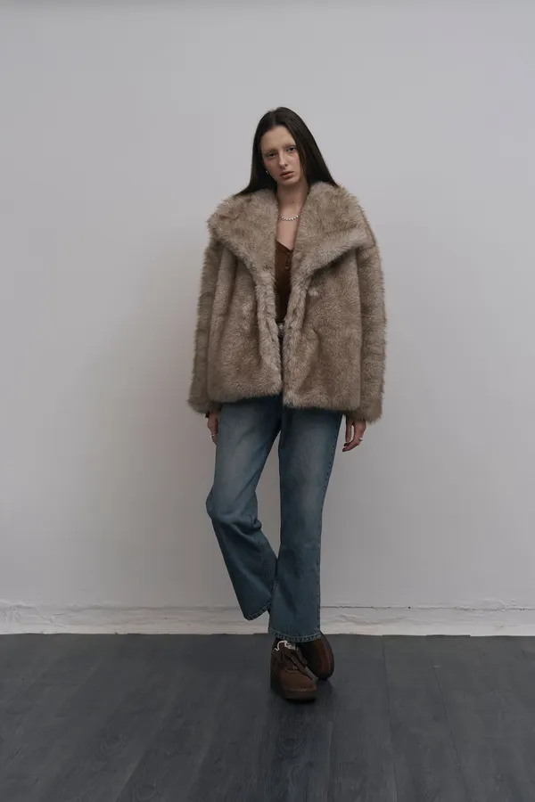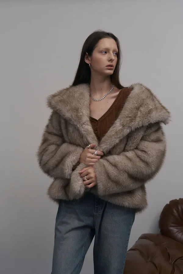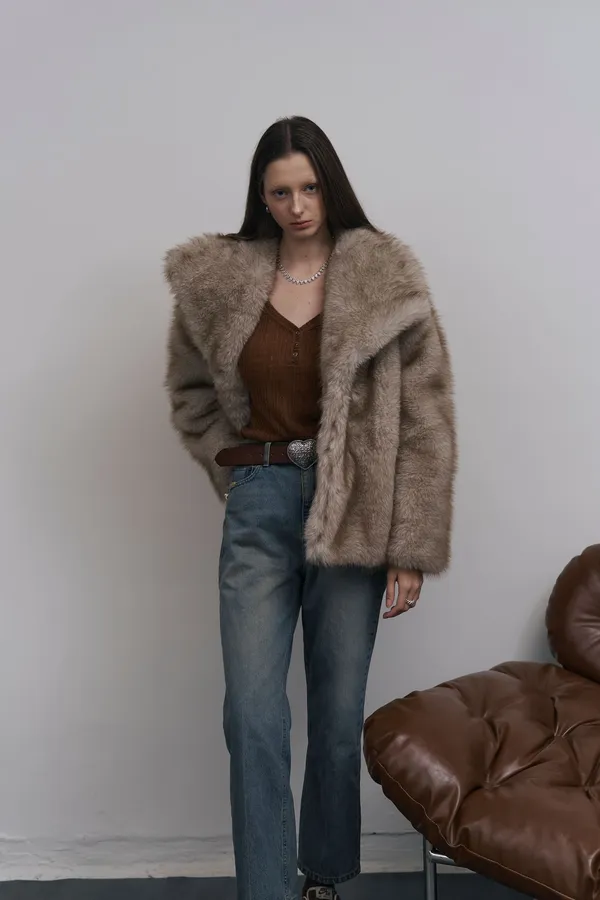 Paris17 [在途現貨] 大領片淺金色漸層毛毛外套 ,今年一定要擁有的毛毛外套❤️