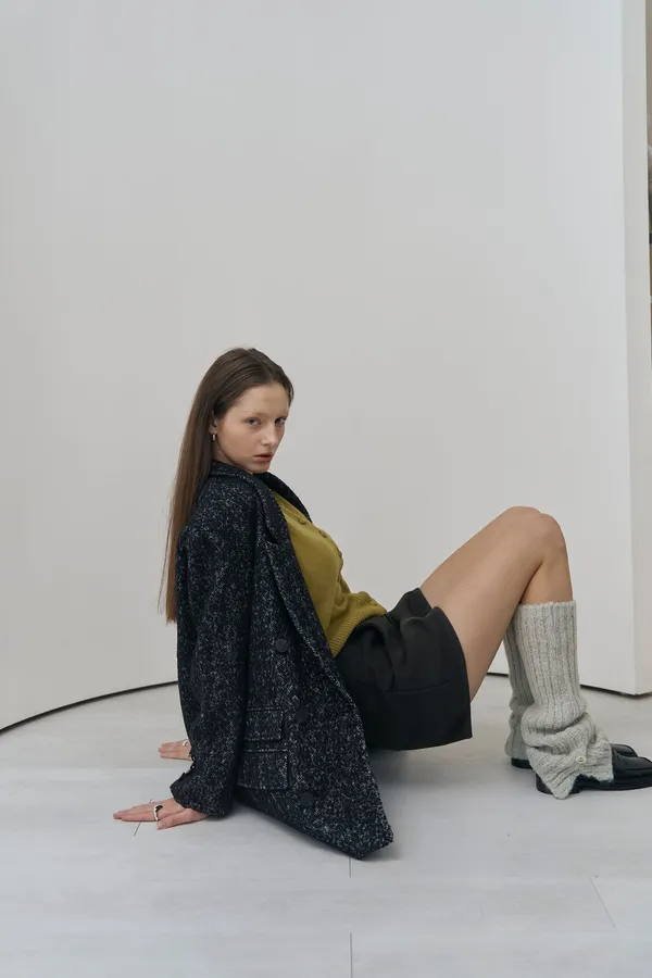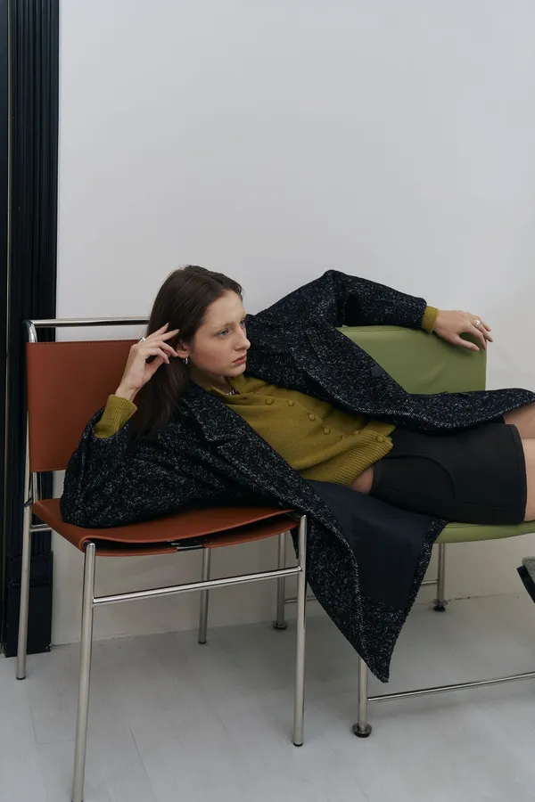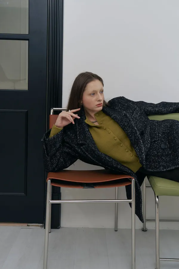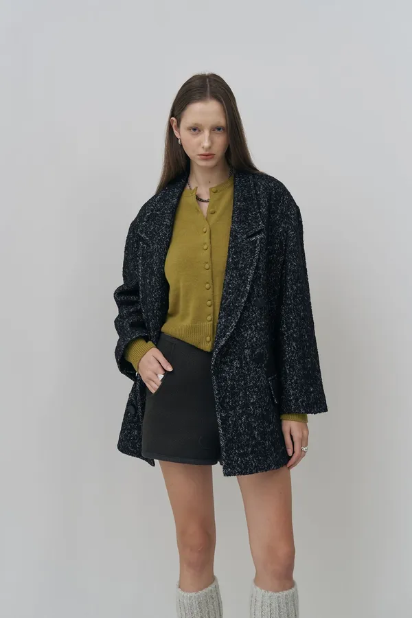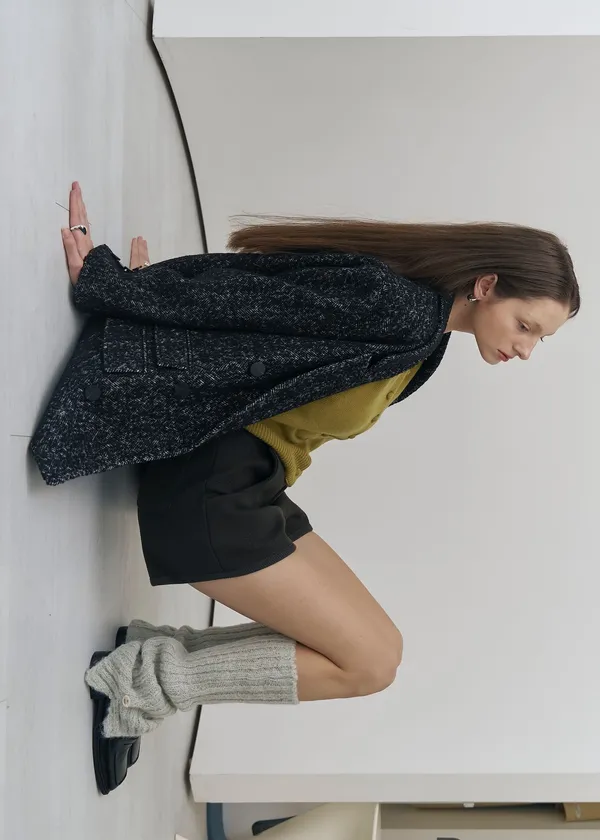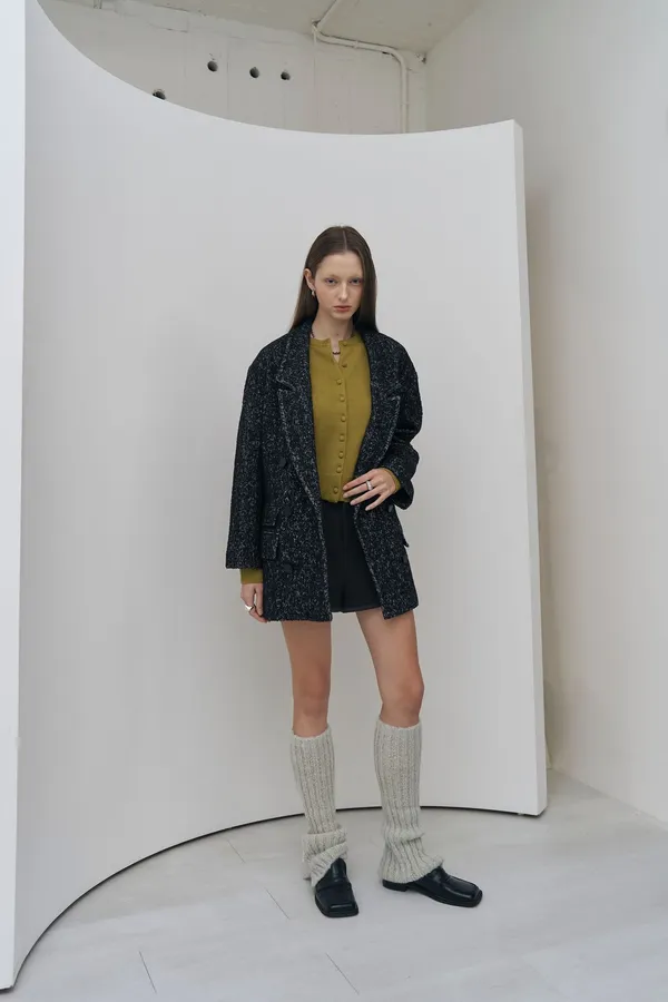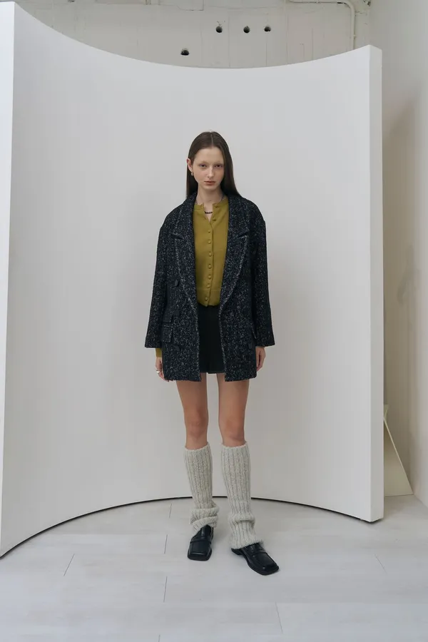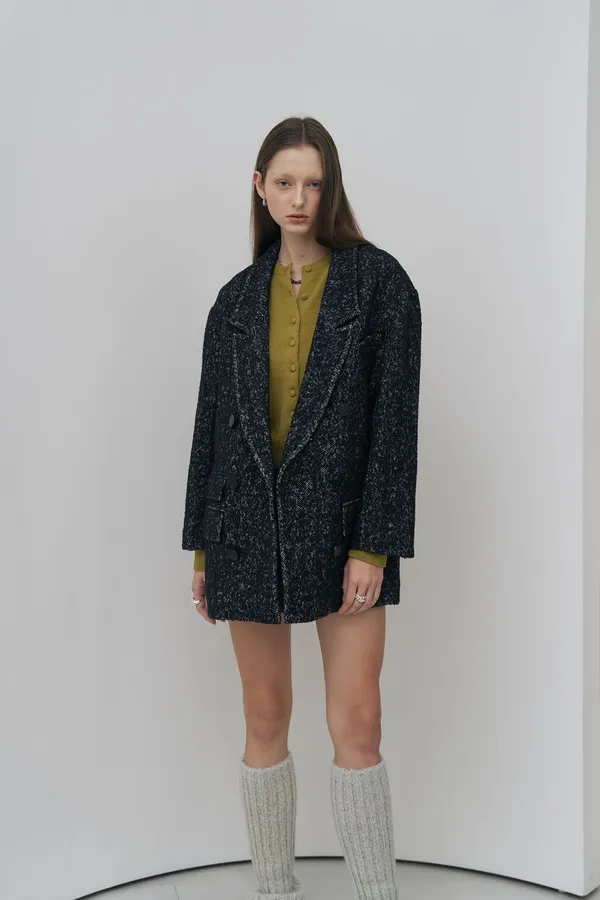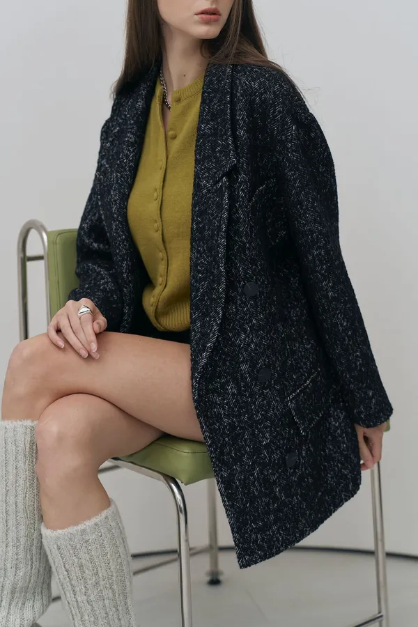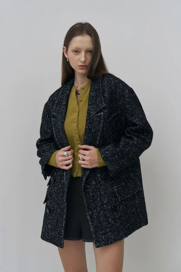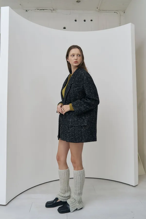 Paris21 [在途現貨 ] 黑色人形紋路日牌感落肩西裝羊毛外套 |78cm S/M