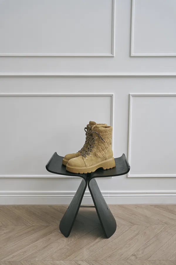 Paris25 [年前出貨] 本次連線必買 全真皮新版麂皮QQ毛拼接短靴~~~❤️