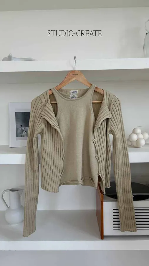 S007 兩件式針織套組~~背心外套不同織紋很美超愛~