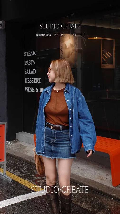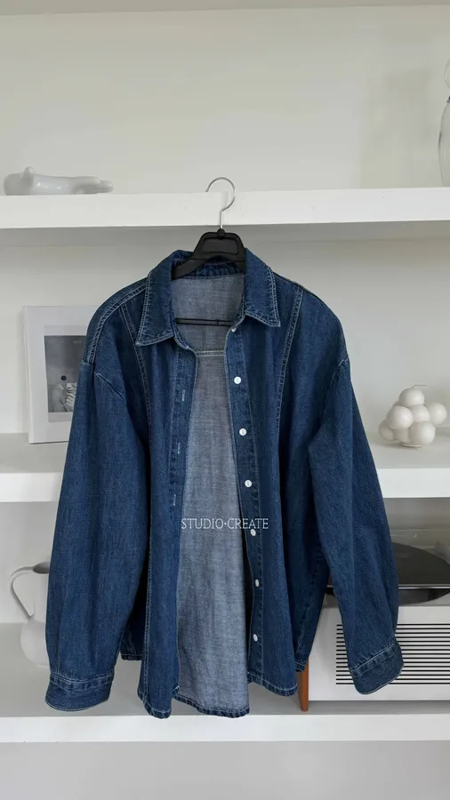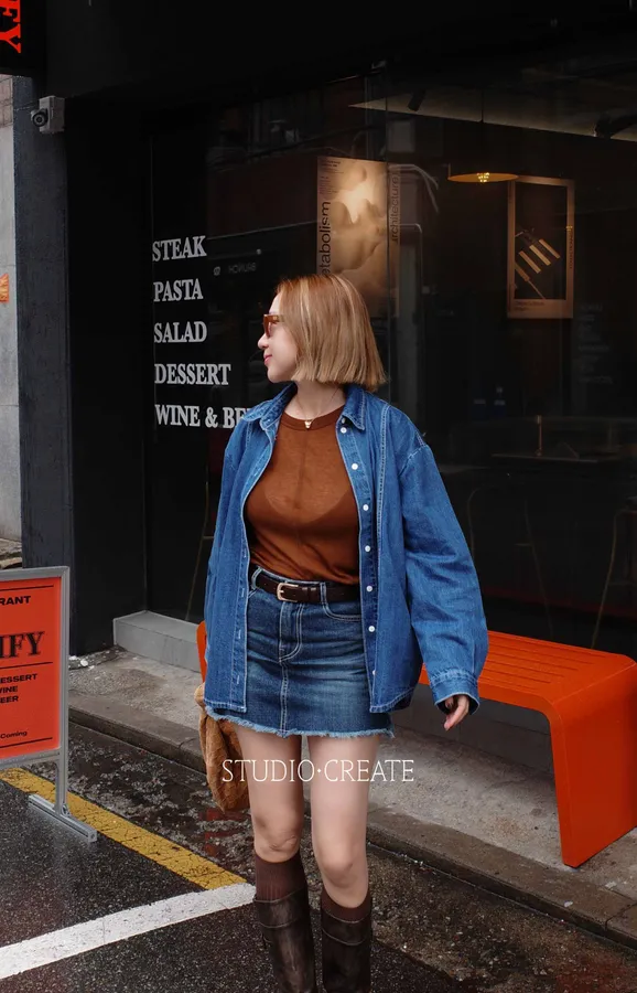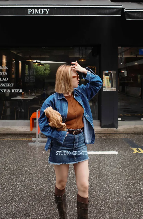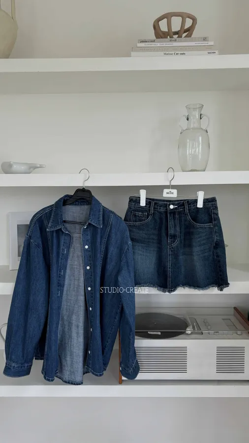 S032 [獨家自訂款] 深藍水洗反線時髦牛仔襯衫+褲裙~~必收~❤️
