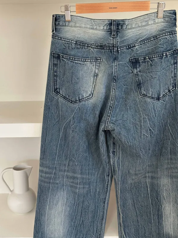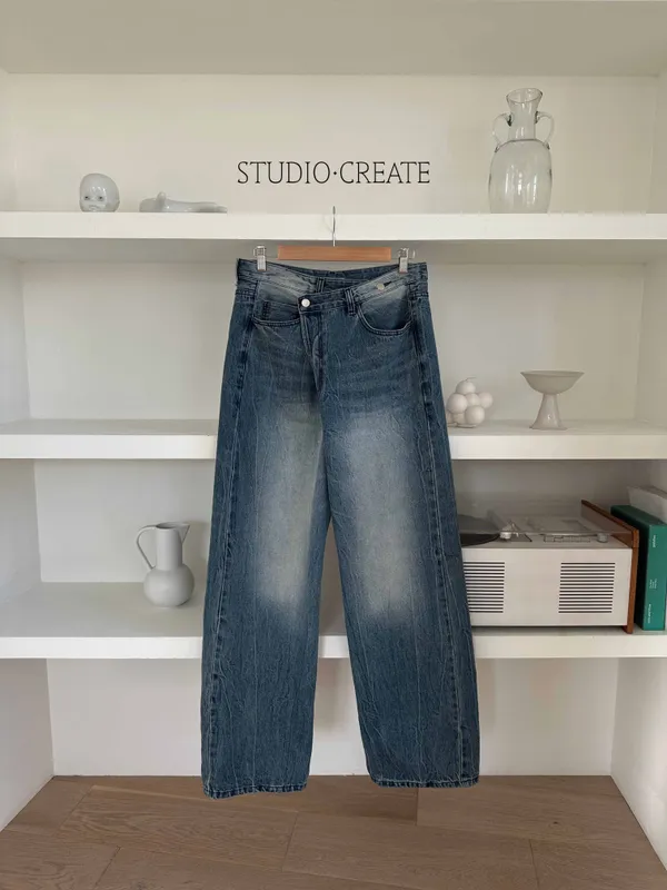 ST018[獨家自訂款 /四尺寸加開] 本月我們第一名。交叉褲頭水洗微爆裂中直筒牛仔褲~~❤️帥爆
