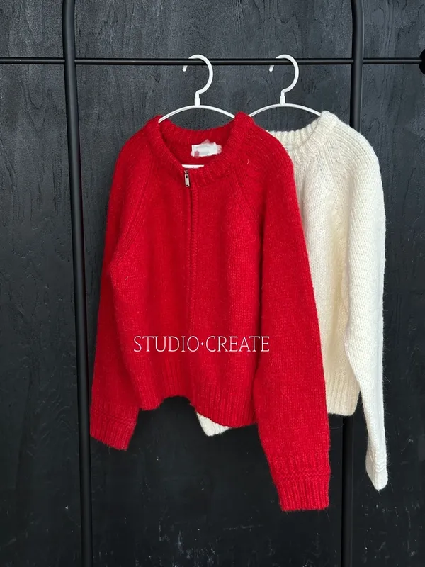 T006 本月必買 紅色上下拉鍊圓領毛衣外套~~❤️ 全部人清單❤️