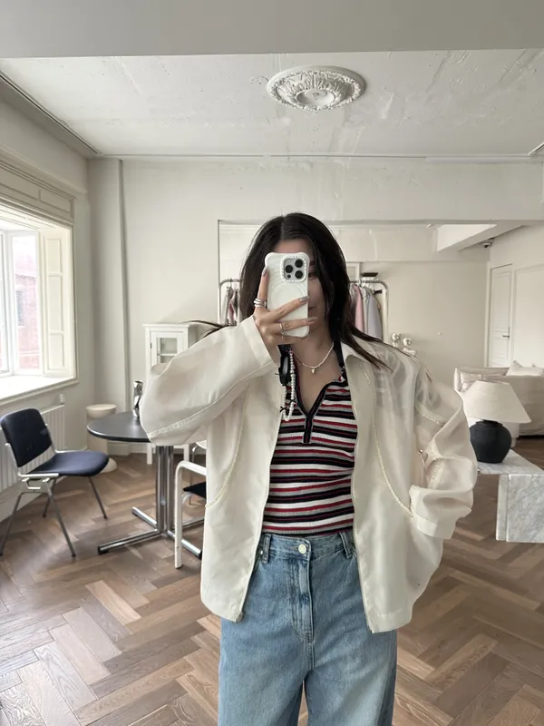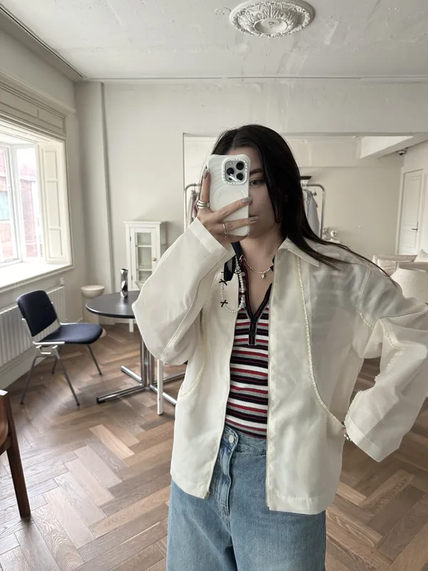 A042 A042 看到這件也是尖叫~~挺版特殊面料透膚外套~~~❤️