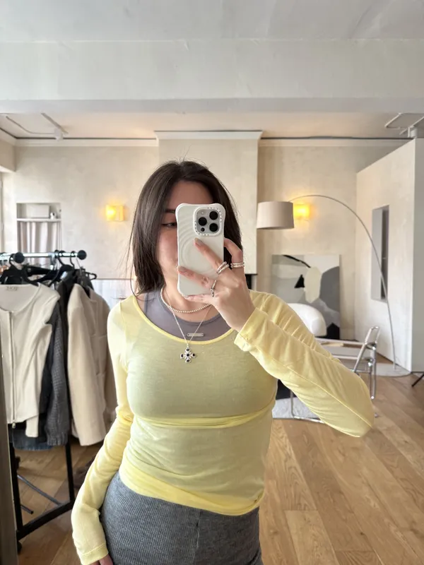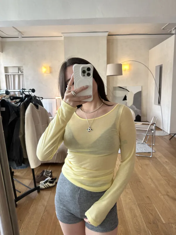 F014 [分開販售 ] 可以自由搭配色系的 小金牌挖背top / 大U領透膚上衣