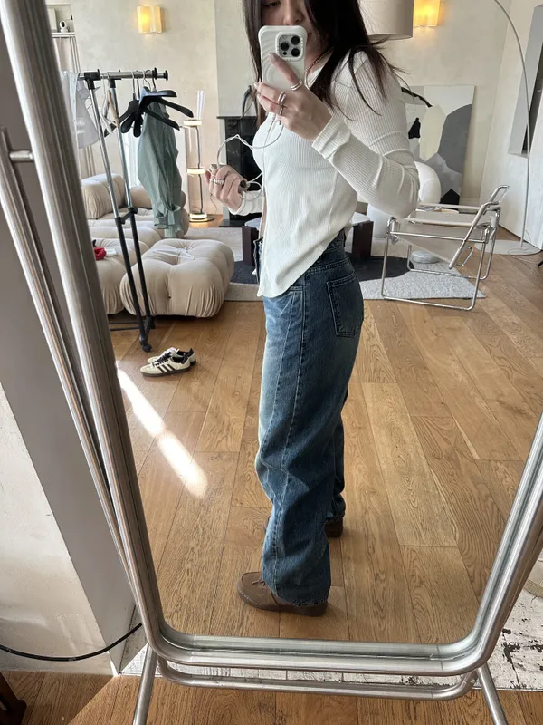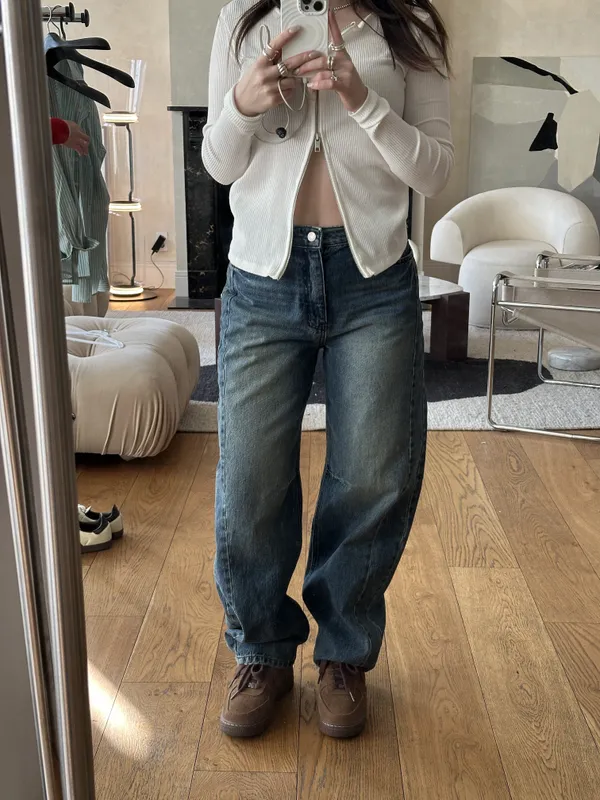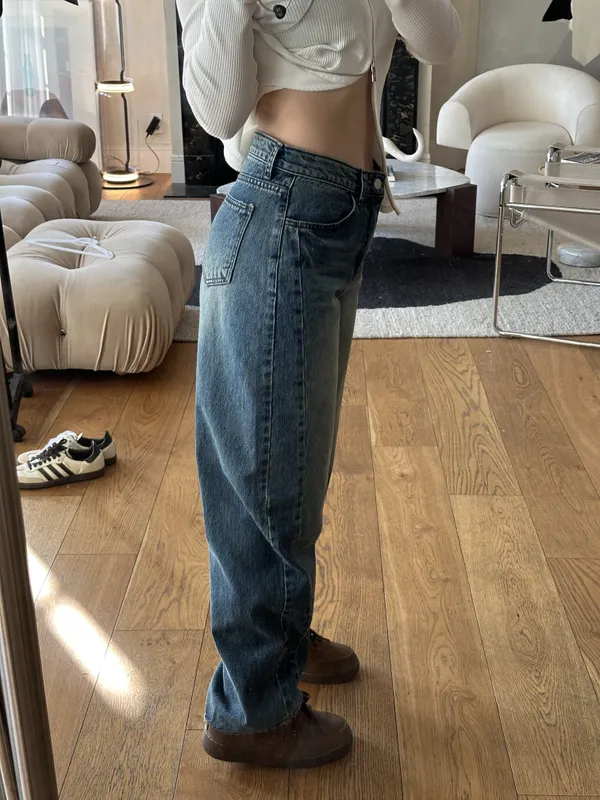 F033 [獨家自訂款/尺寸加開] 多重設計顯瘦小彎刀深藍水洗牛仔褲~~必收