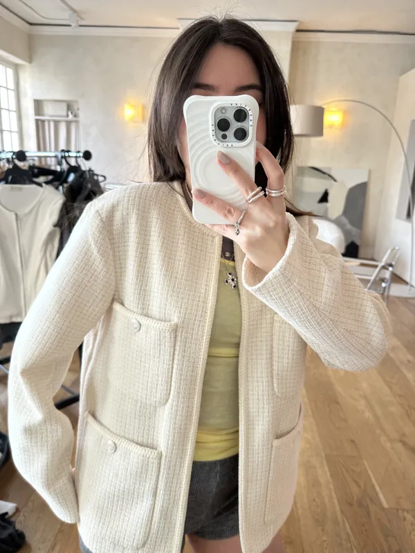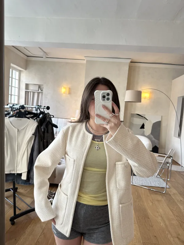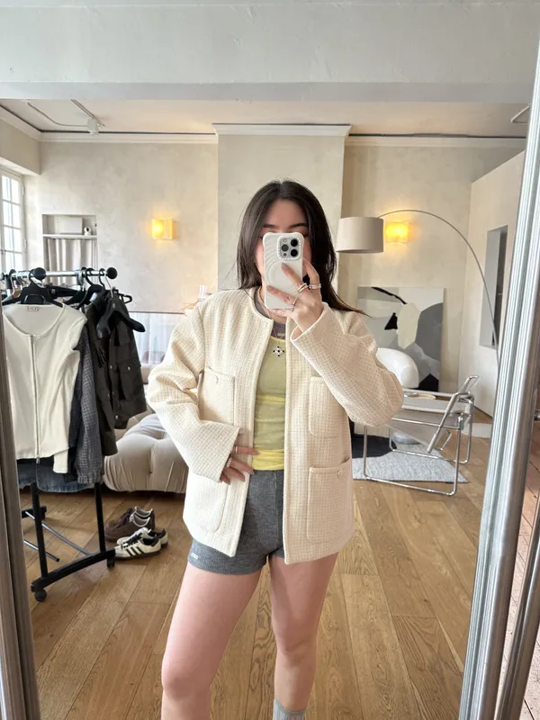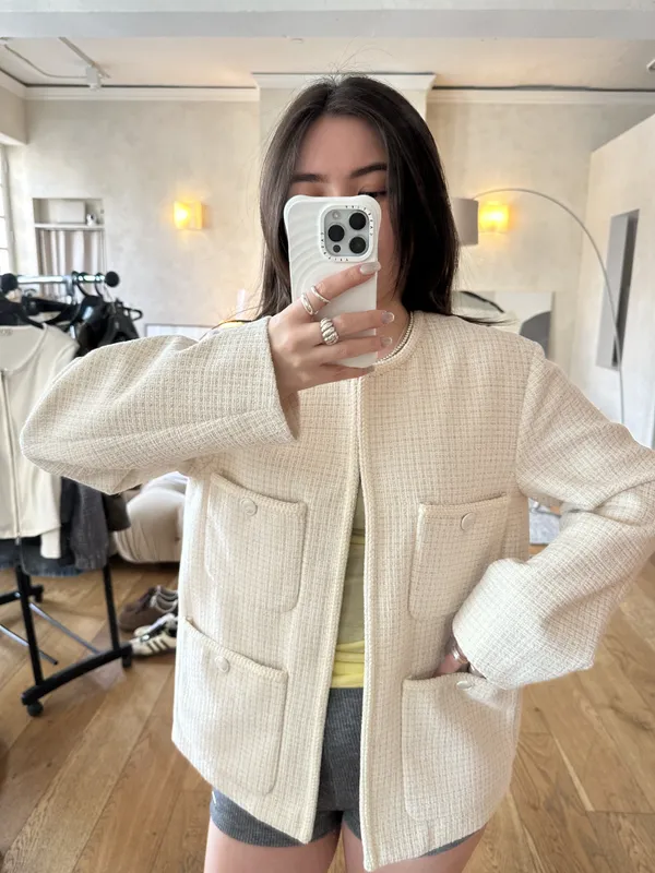 F035[獨家自訂款] 簡單就是高級的 白色系列香香四口袋外套~~可優雅可帥~❤️