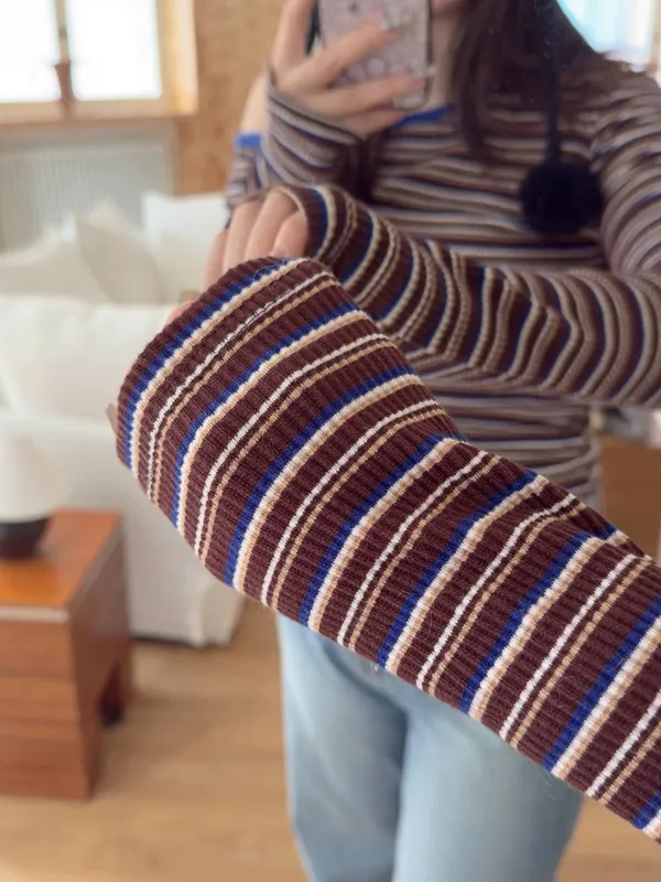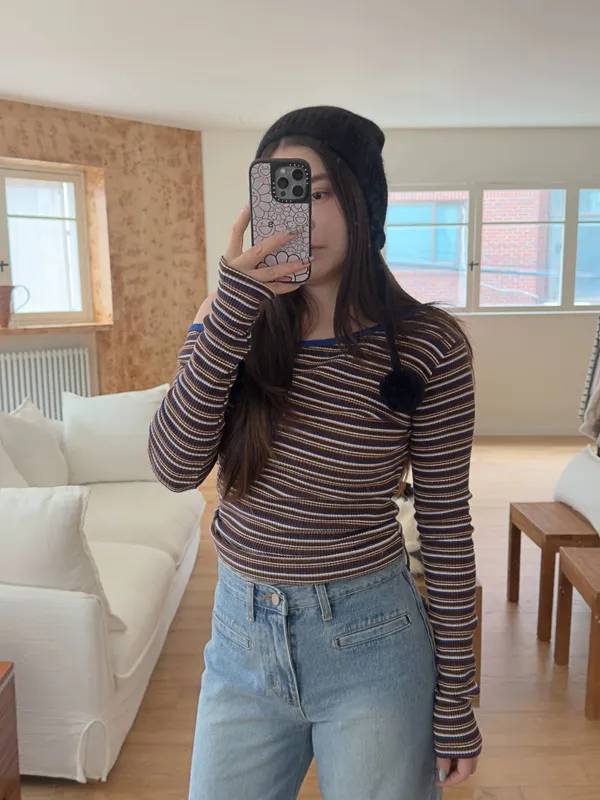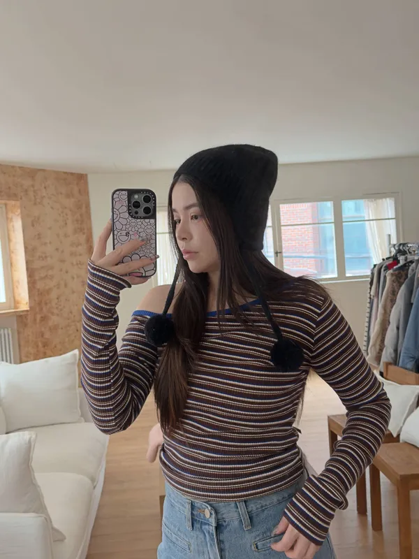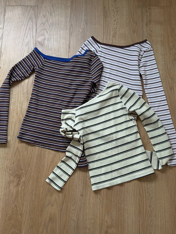 25_KR017 大家敲碗再上架 條紋斜肩T