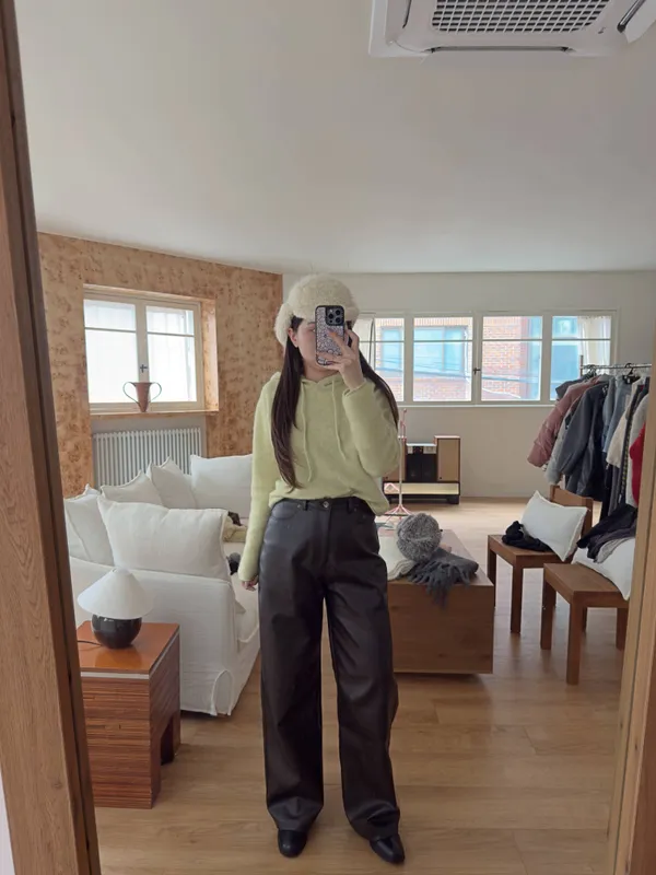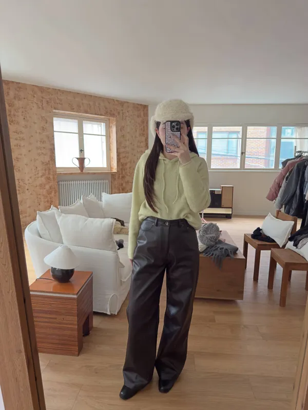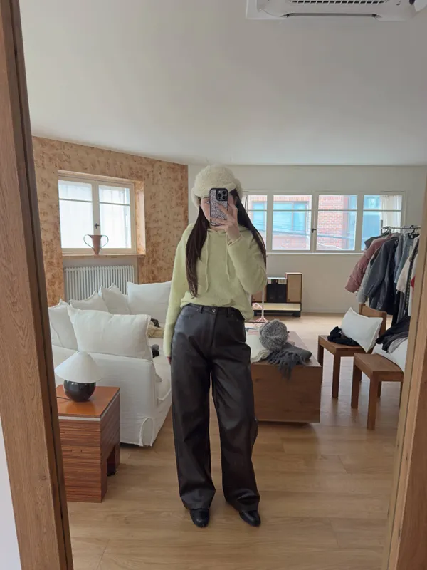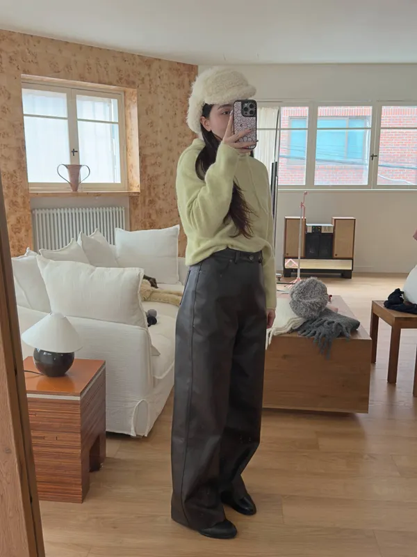 鬆弛牛仔褲版型的皮褲