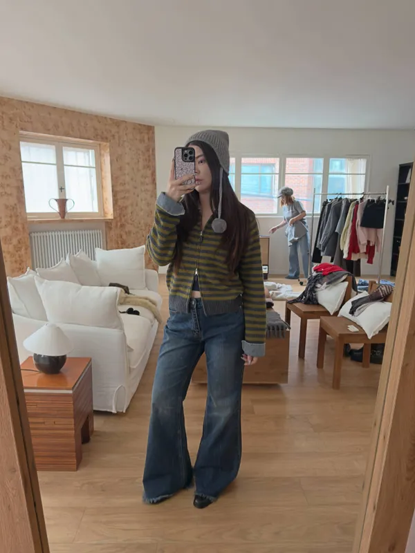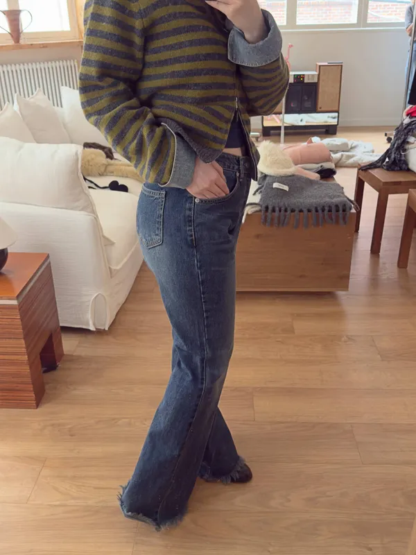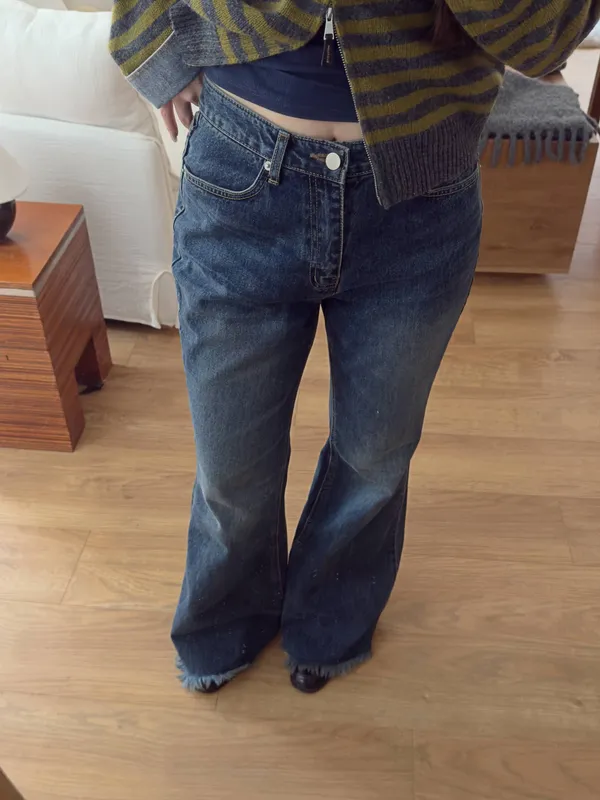 不修邊褲頭靴型褲時髦 搭配起來很復古