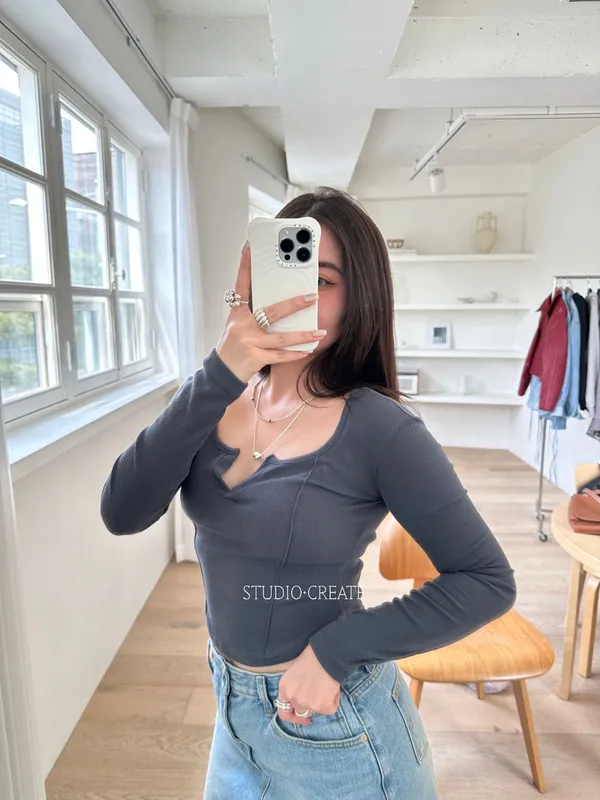 M049 推薦包色~~小辣妹側腰短版打底衣~~❤️ 淺灰深灰都美瘋