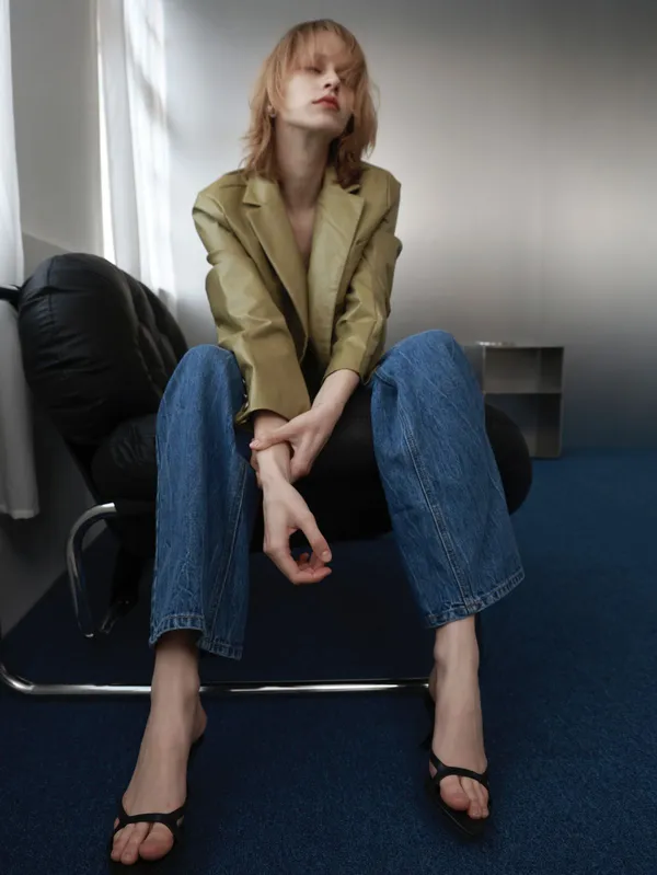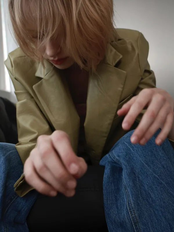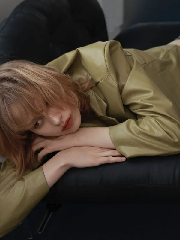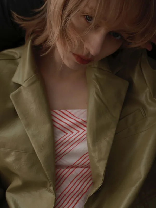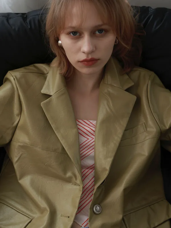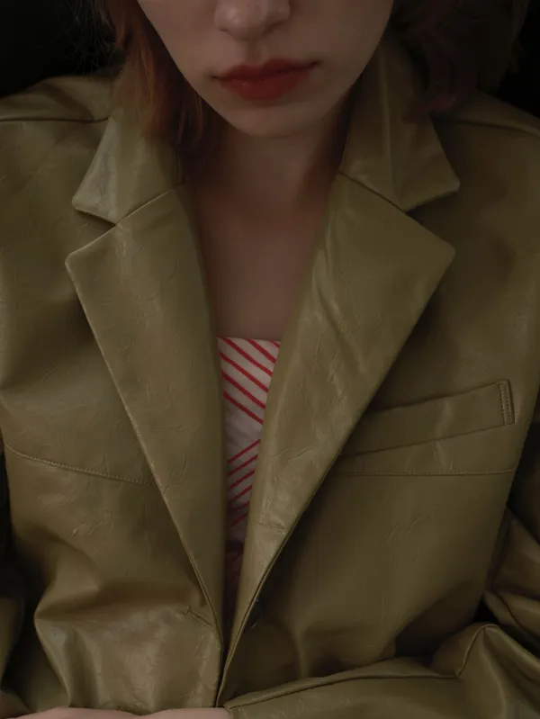 ML39 [獨家自訂款] 濃開心果色 皮革外套
