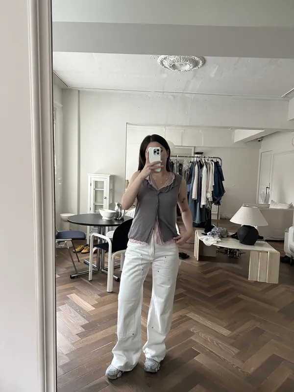 Q034 今年就是喜歡這個設計 新版型白色雨傘褲 超美❤️