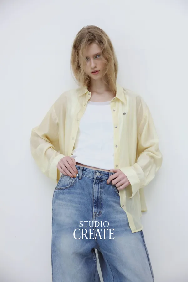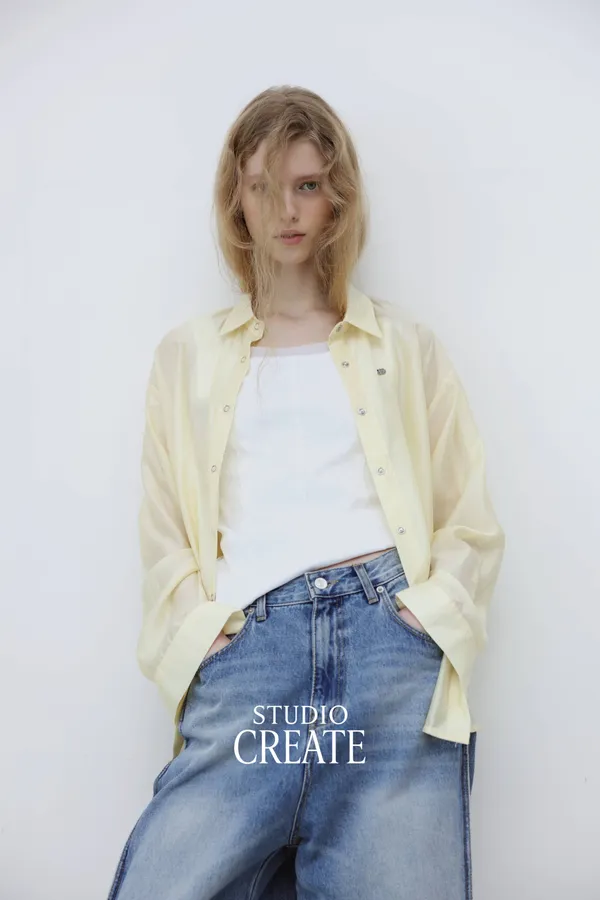25_W054 [ 獨家自訂款 ] 品牌 logo 白色天絲襯衫 夏季必備~❤️