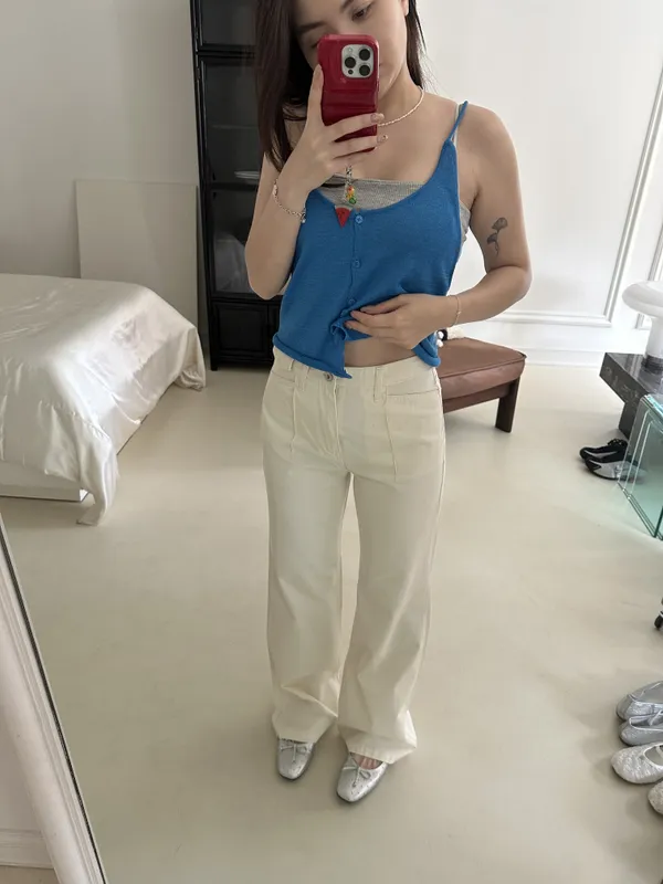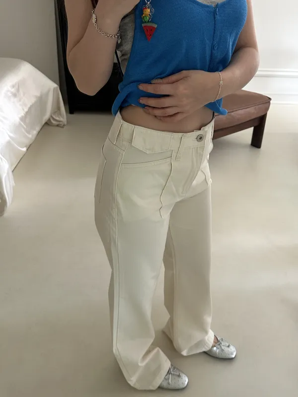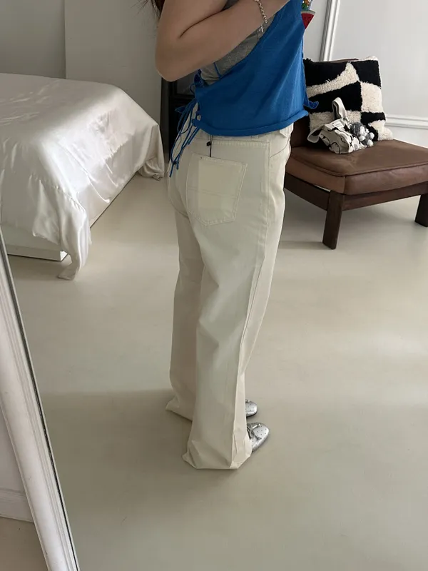 25_SE45[ 現貨 /單高打折 ] 薄料 挺版卡其布料 米白褲子