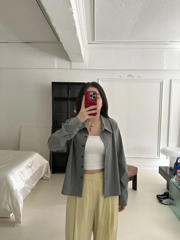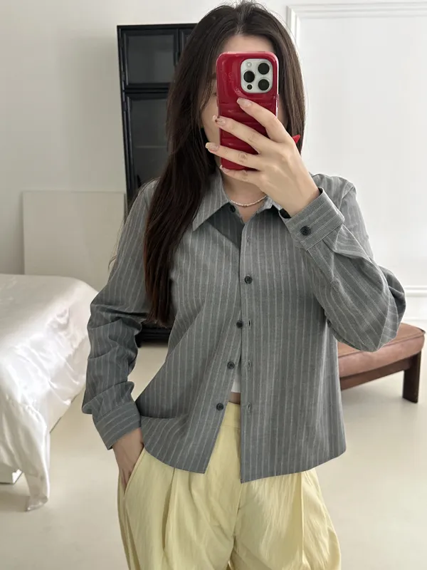 25_SE50 [ 現貨 /高單打折 ] 灰色線條襯衫