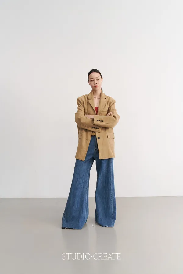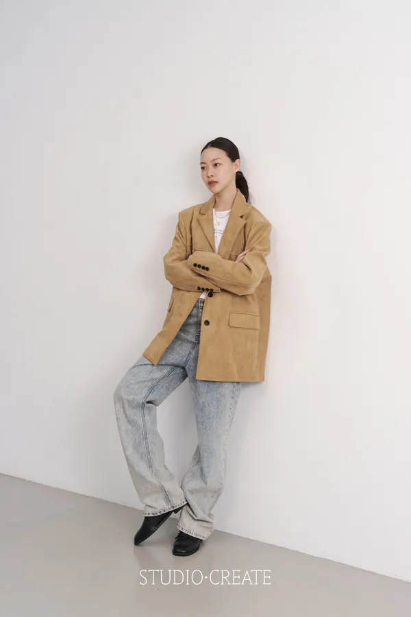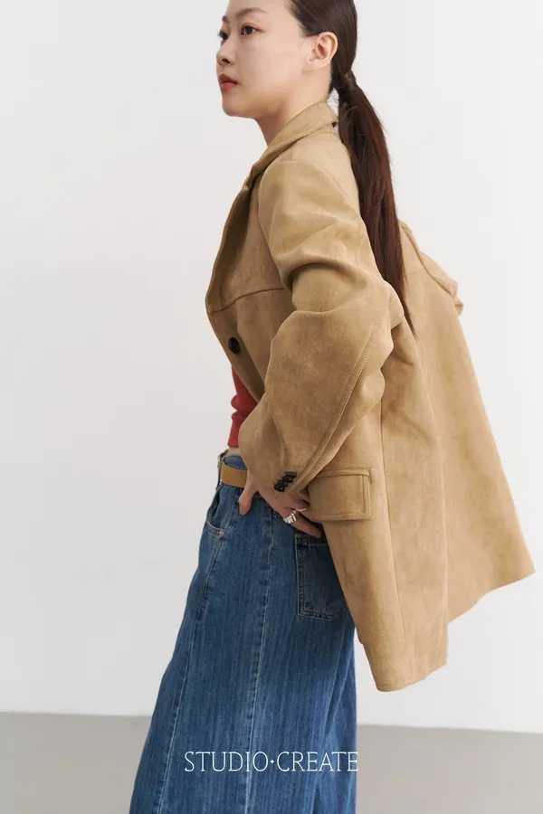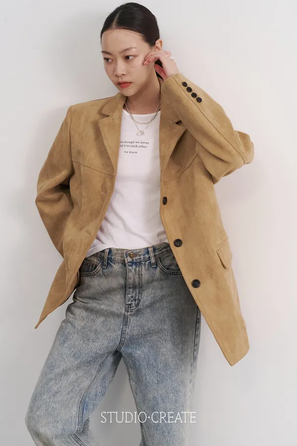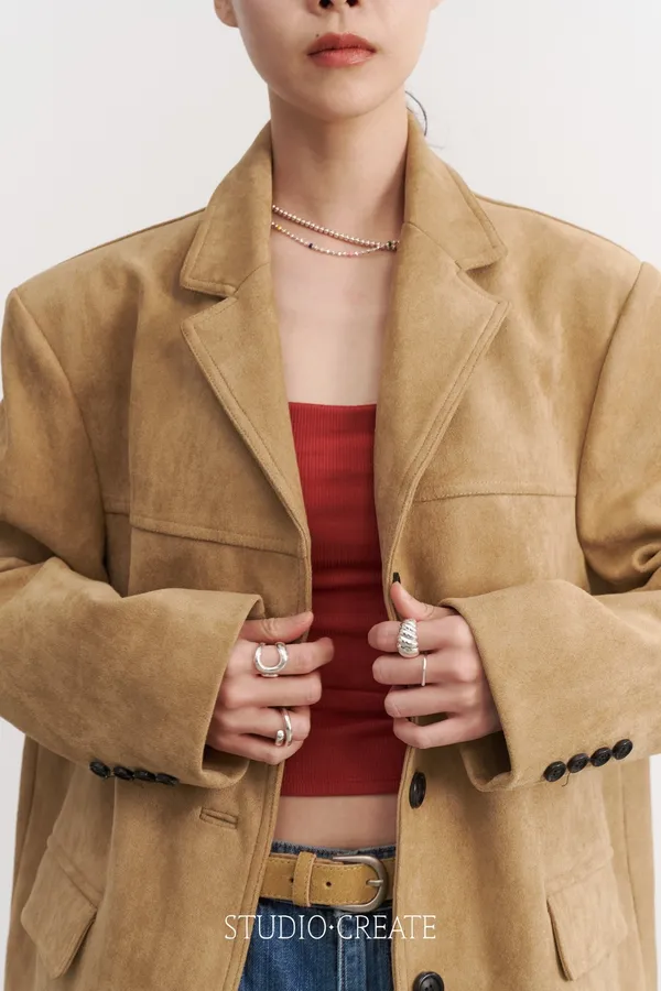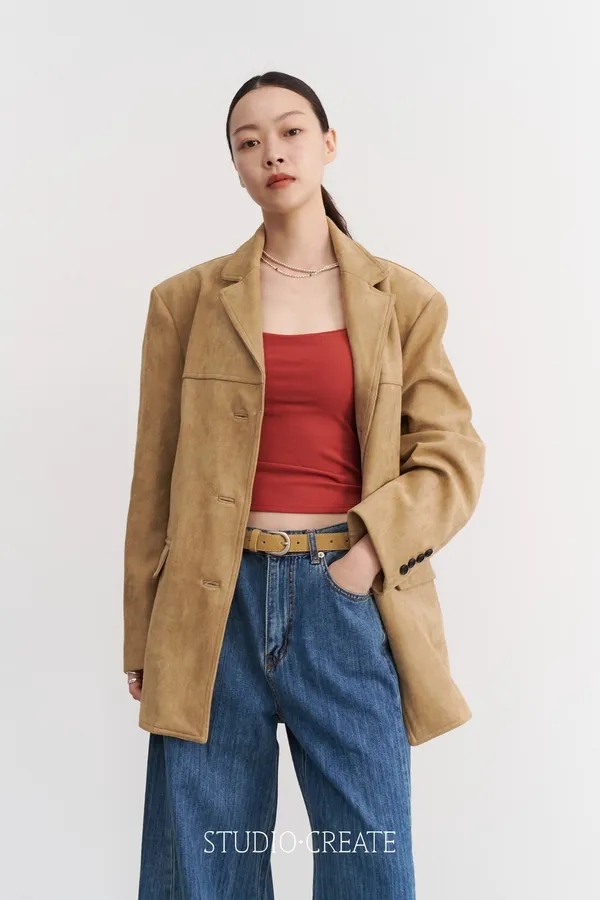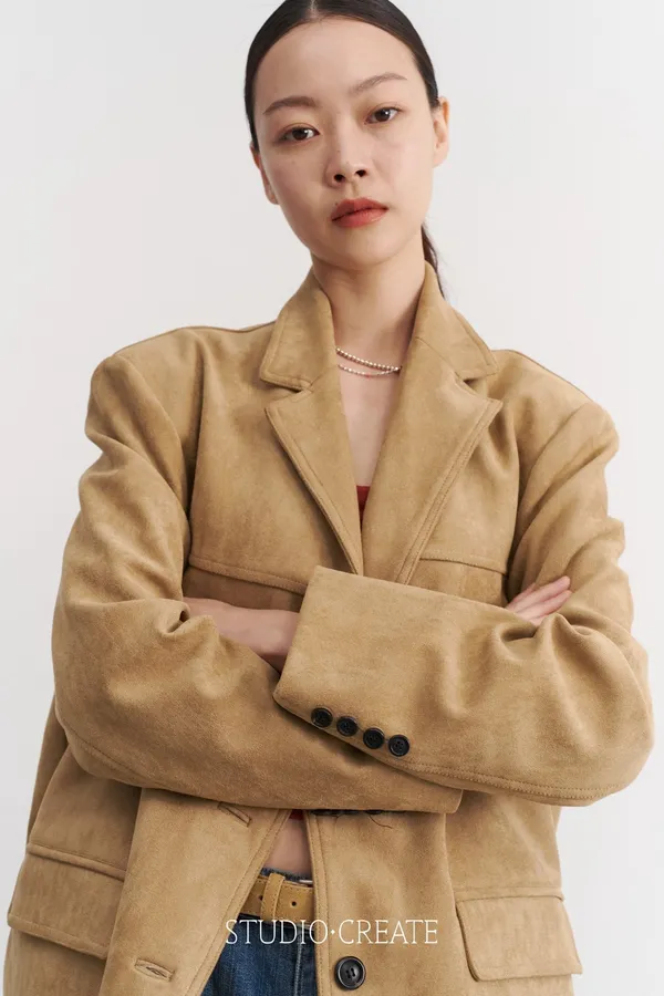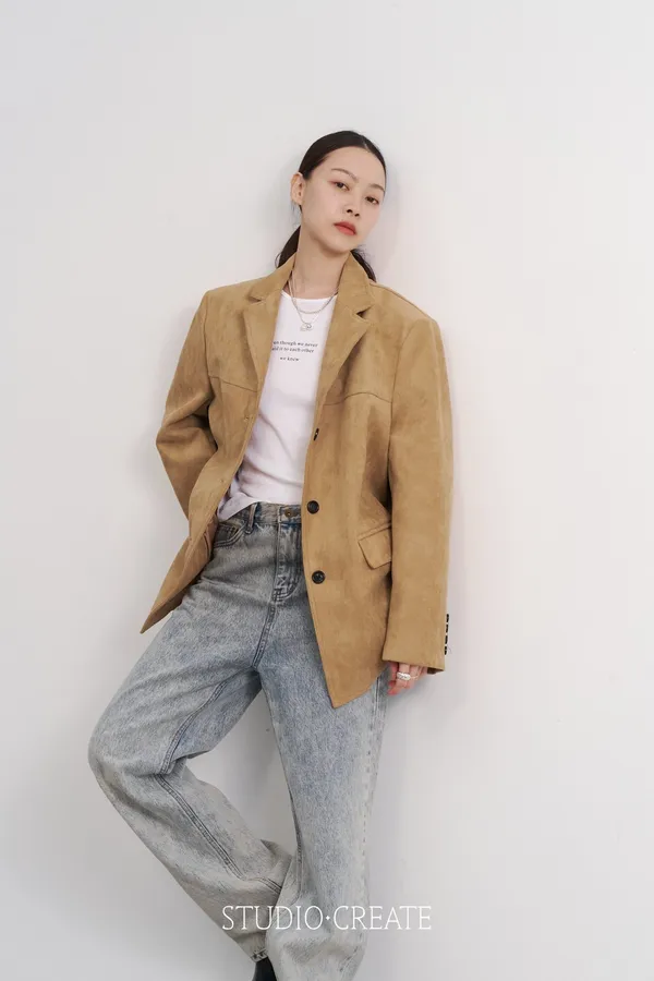 25_k025 [獨家自訂款 ]卡其色麂皮西裝外套