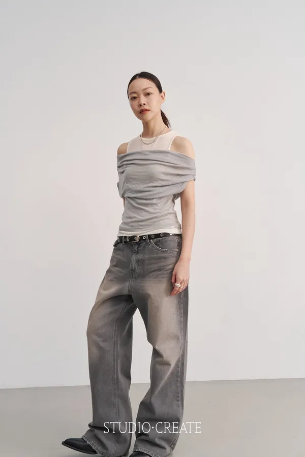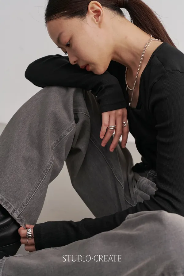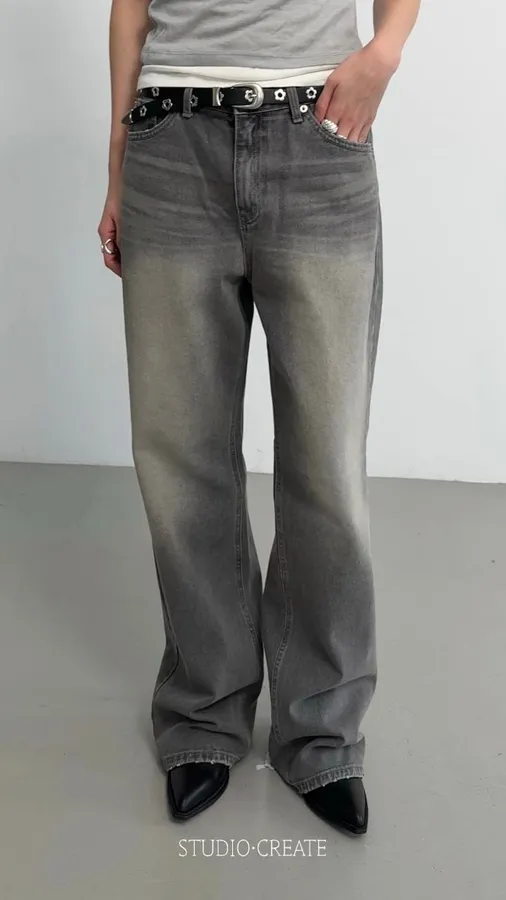 25_k037灰色牛仔褲