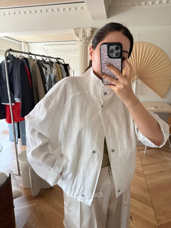 商品特色:夏天必須要有一些可以穿的住的外套 挺料棉麻 看起來就很高級